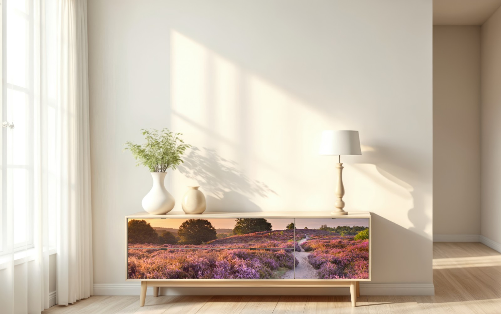 Naklejka repozycjonowalna Posbank o świcie nad wrzosowiskiem
