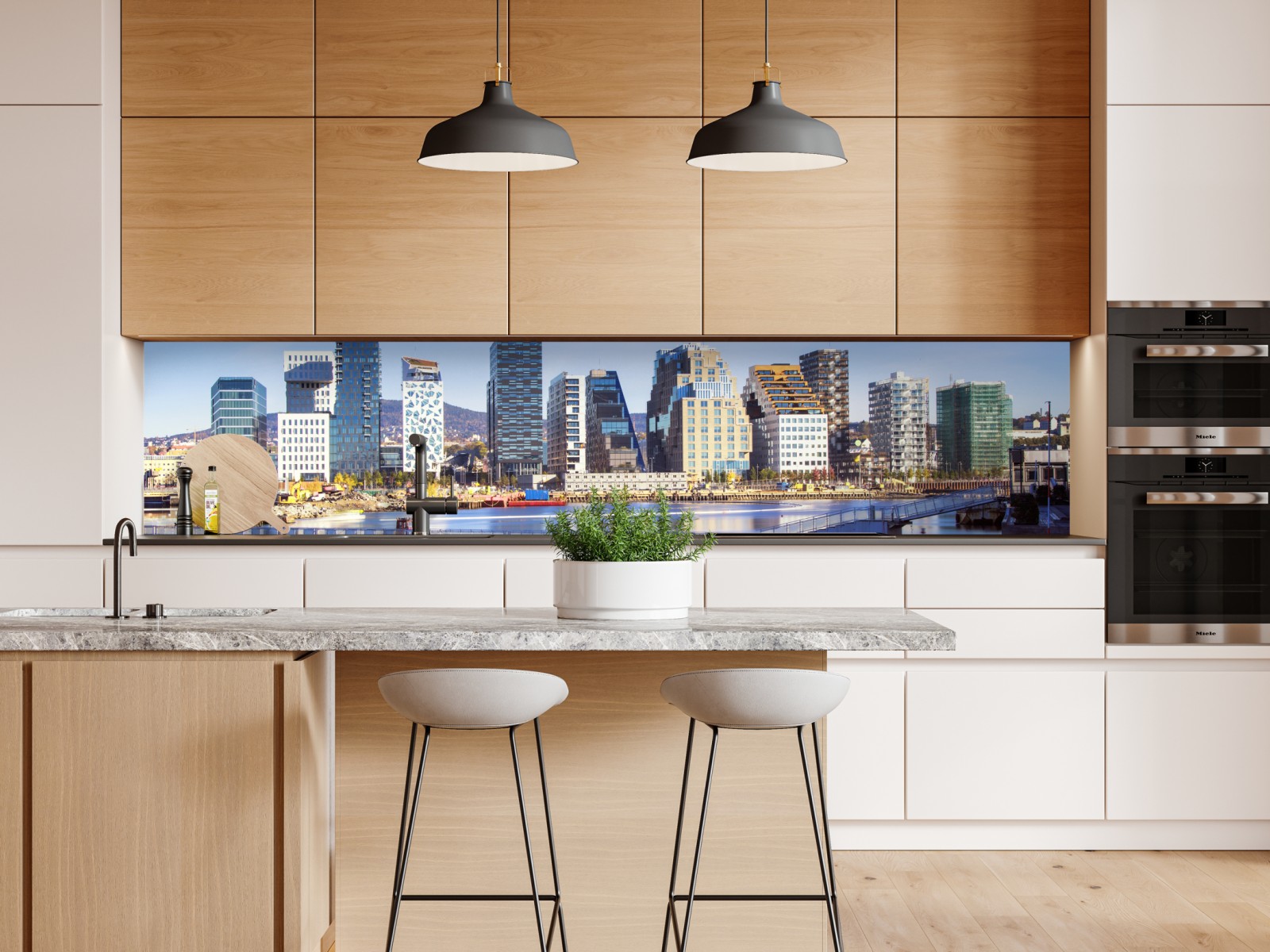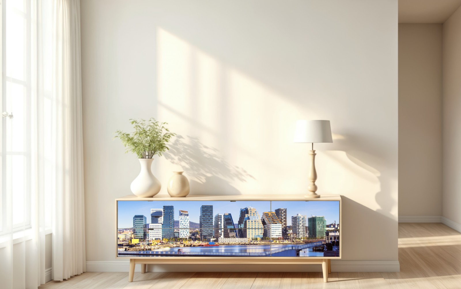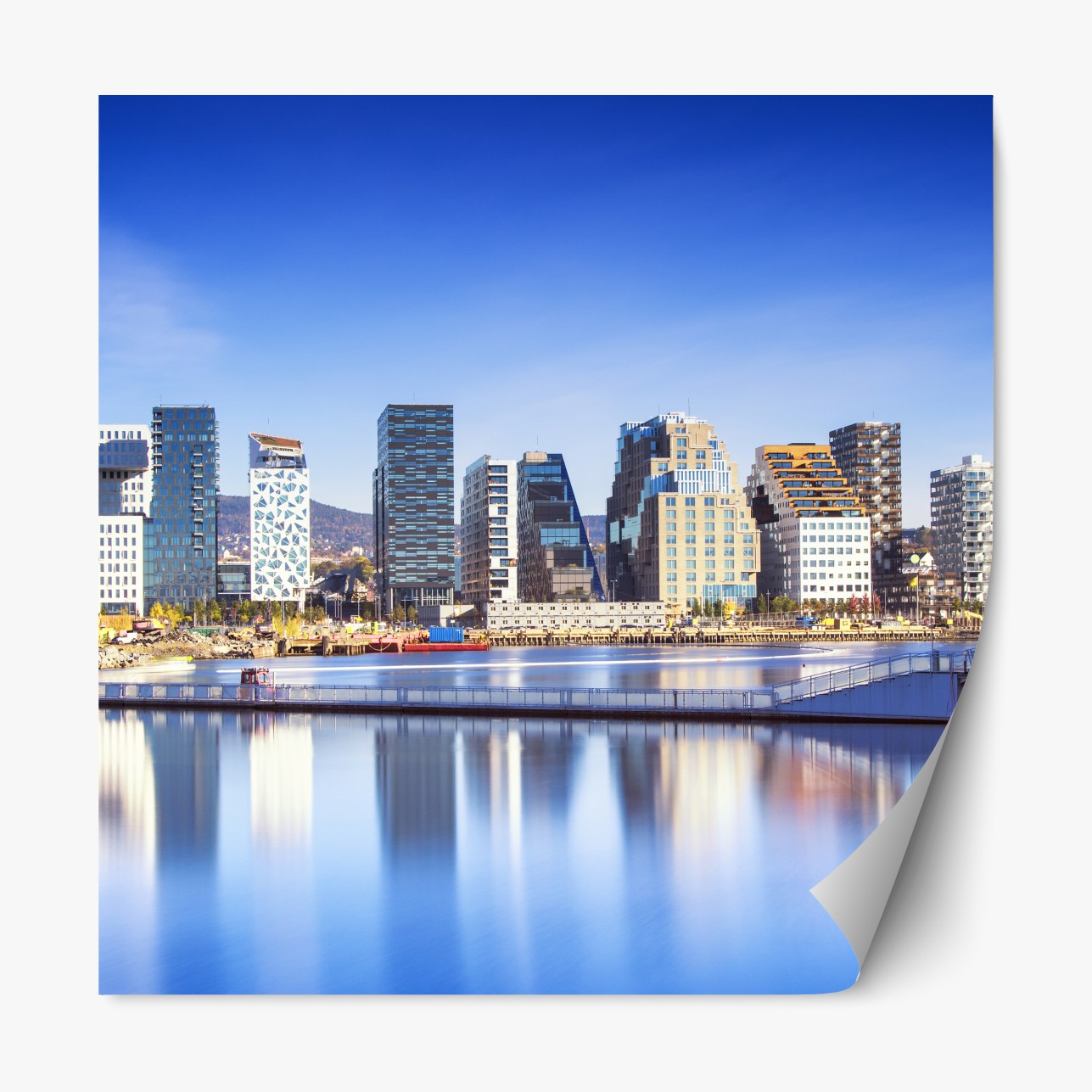 Naklejka repozycjonowalna Nowoczesna panorama nabrzeża z odbiciami