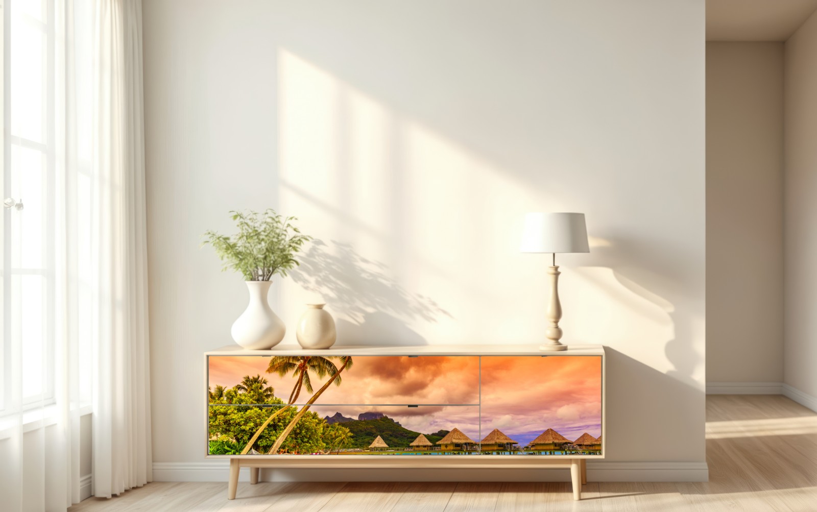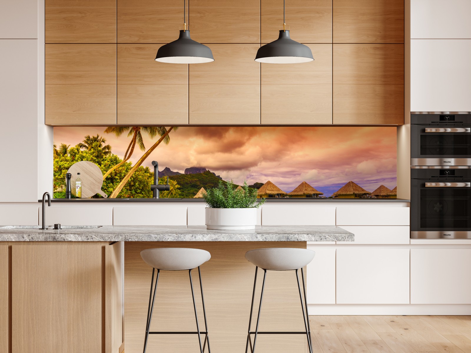 Naklejka repozycjonowalna Zachód słońca w Bora Bora nad bungalowami na wodzie