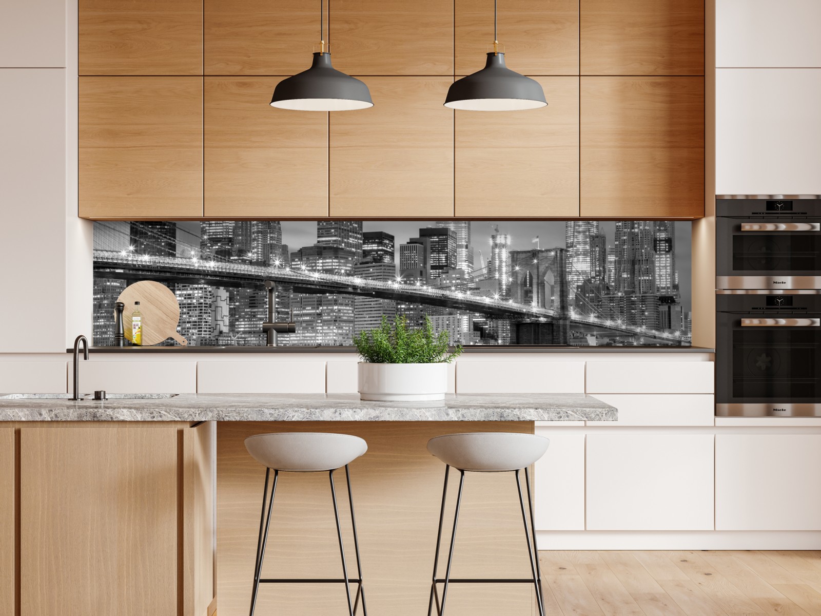Naklejka repozycjonowalna Czarno-biała panorama Nowy Jork z Mostem Brooklyńskim