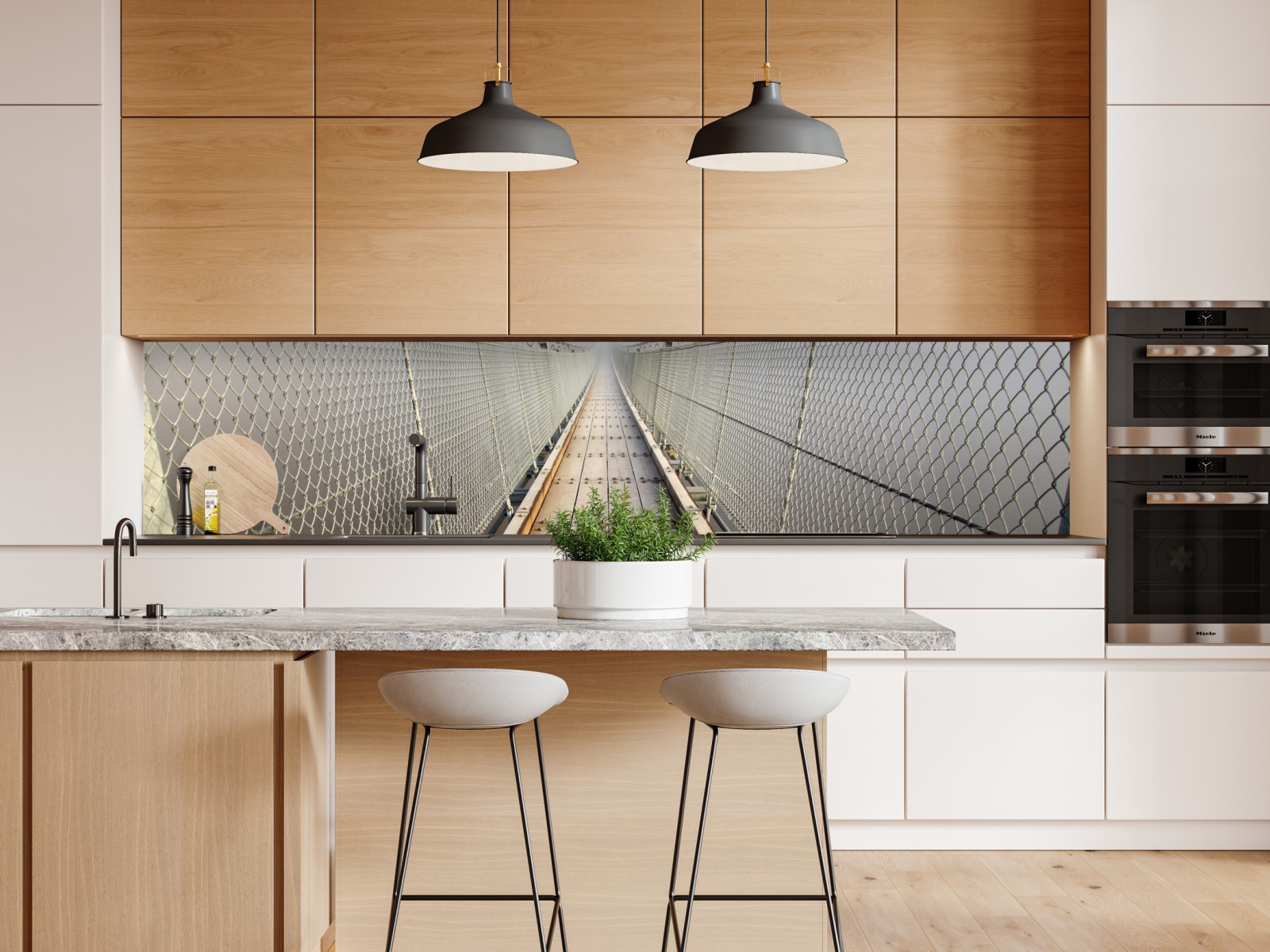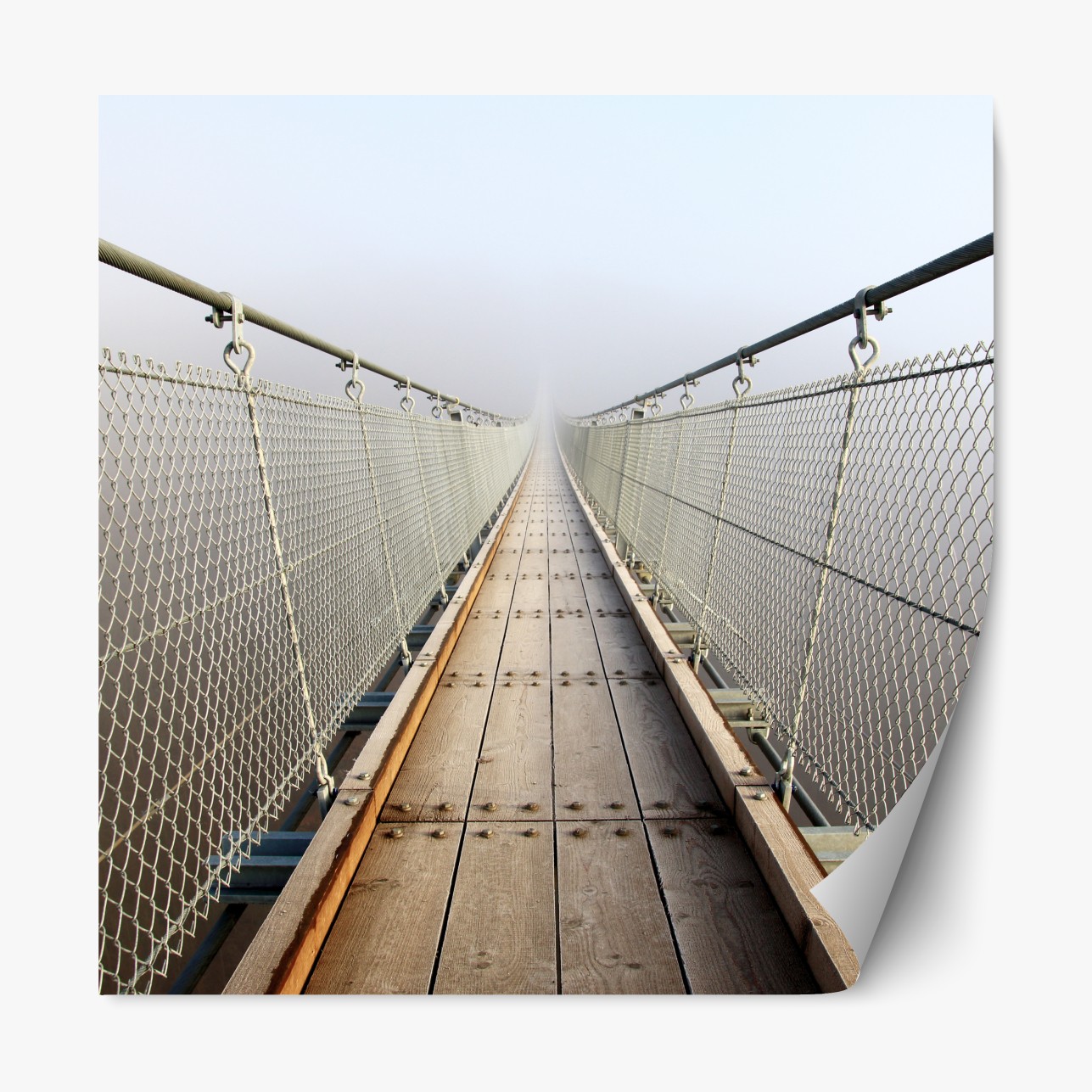 Naklejka repozycjonowalna Mglisty most wiszący prowadzący w mgłę