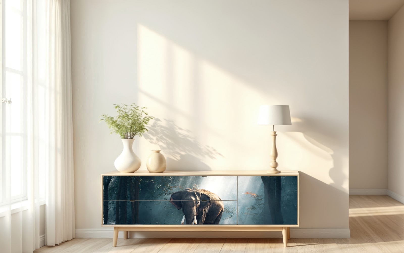 Naklejka repozycjonowalna Majestatyczny słoń w oświetlonym lesie