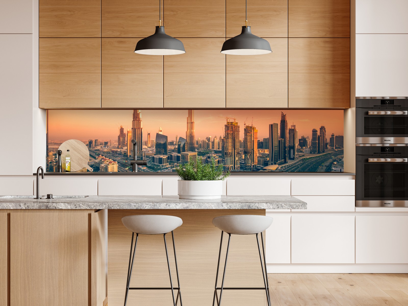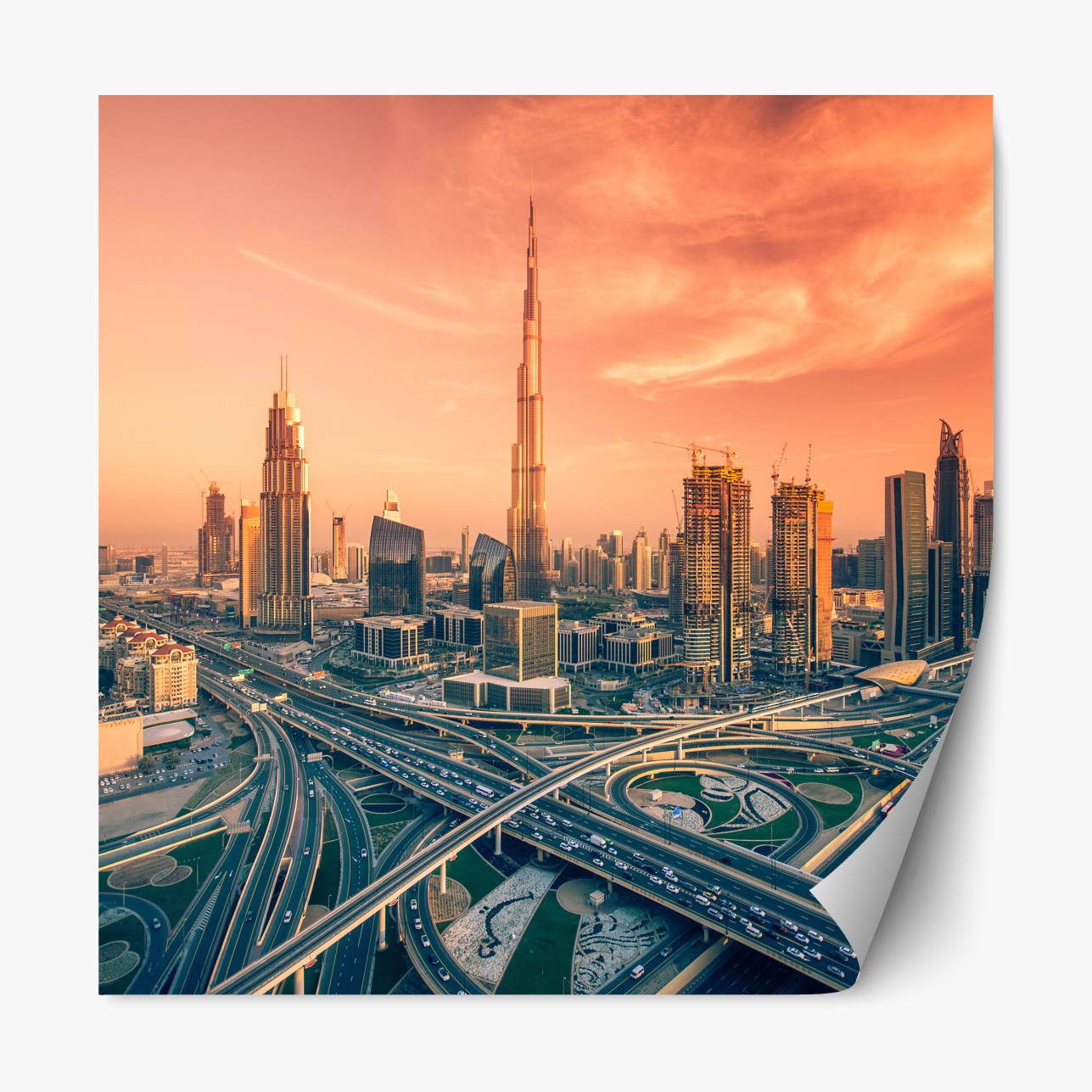 Naklejka repozycjonowalna Panorama Dubaju o zachodzie słońca