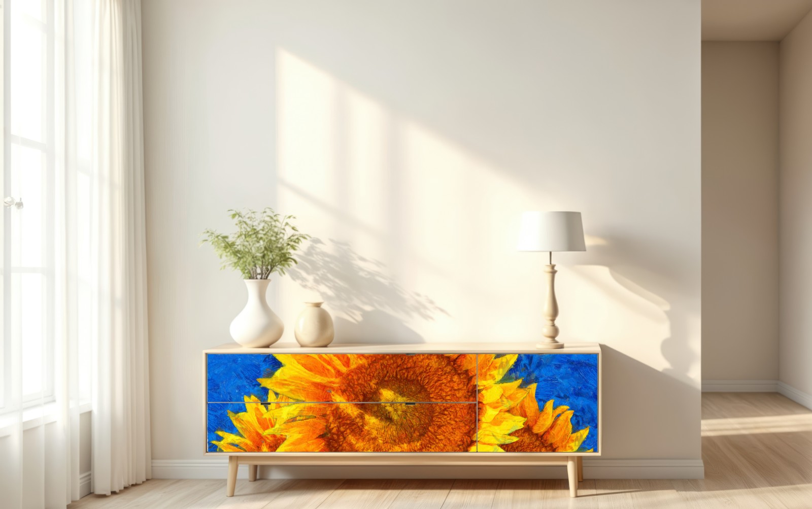 Naklejka repozycjonowalna Żywe słoneczniki w stylu Van Gogha