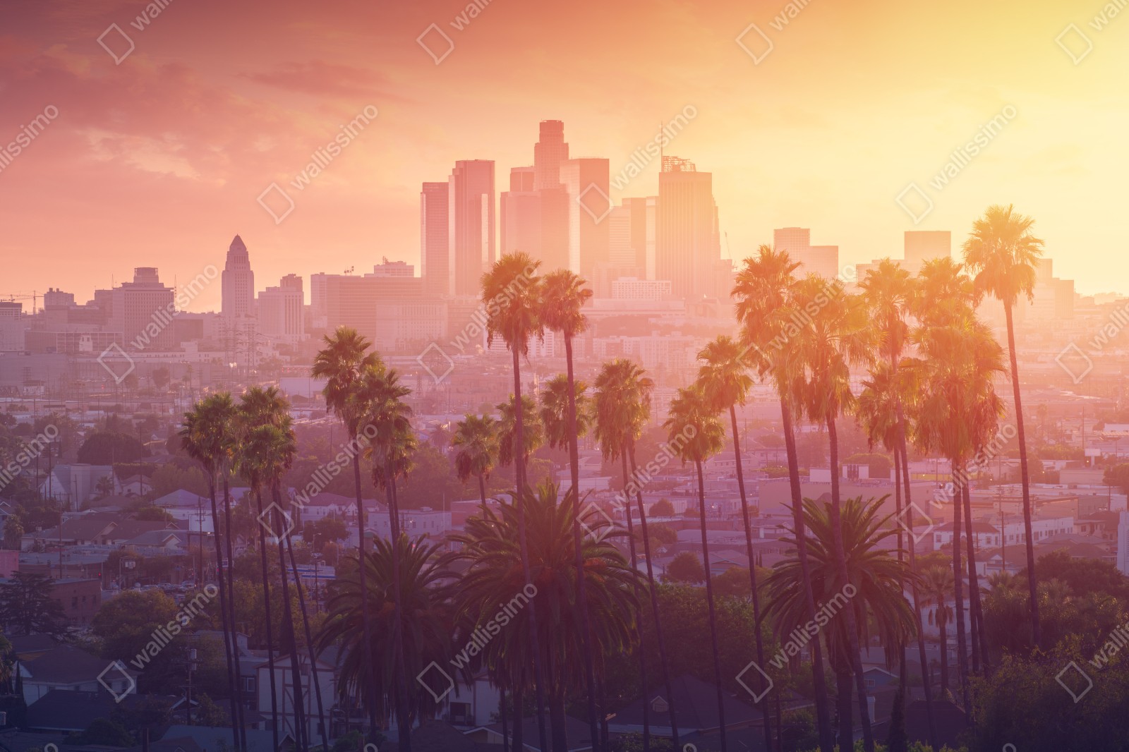 Naklejka repozycjonowalna Los Angeles złoty zachód słońca nad miastem