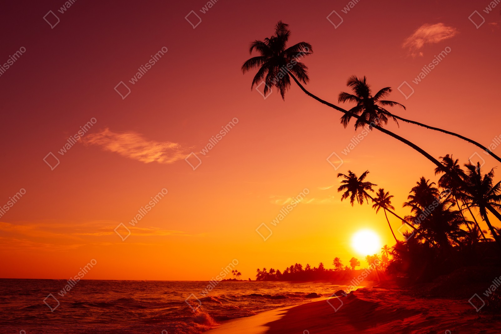 Naklejka repozycjonowalna Tropikalny zachód słońca nad plażą