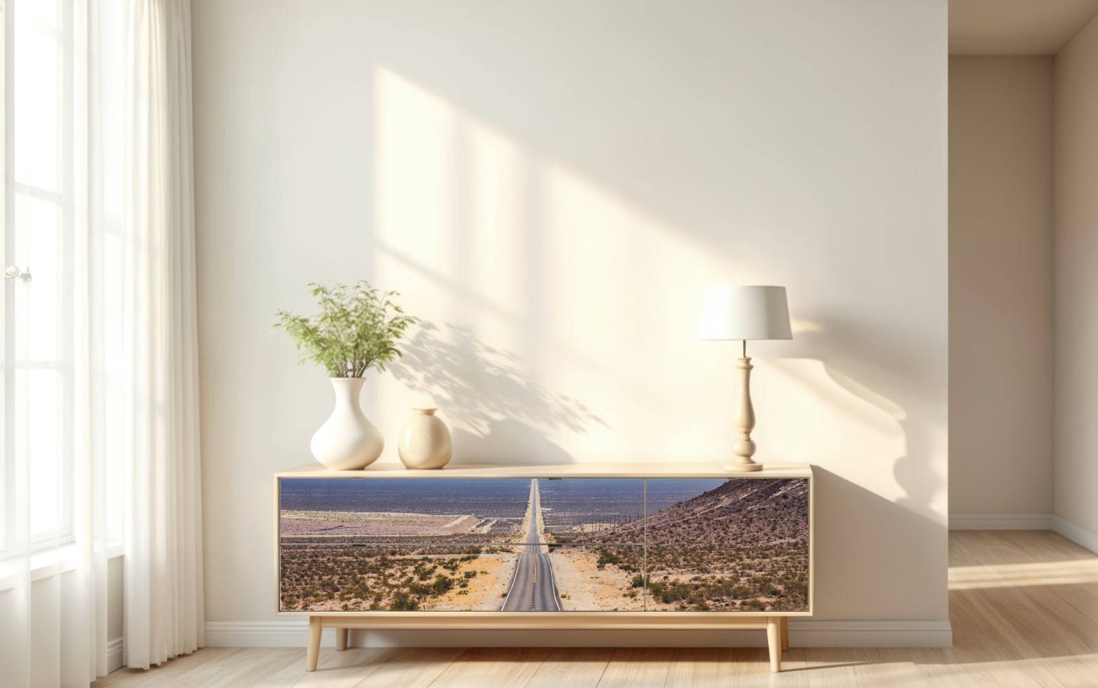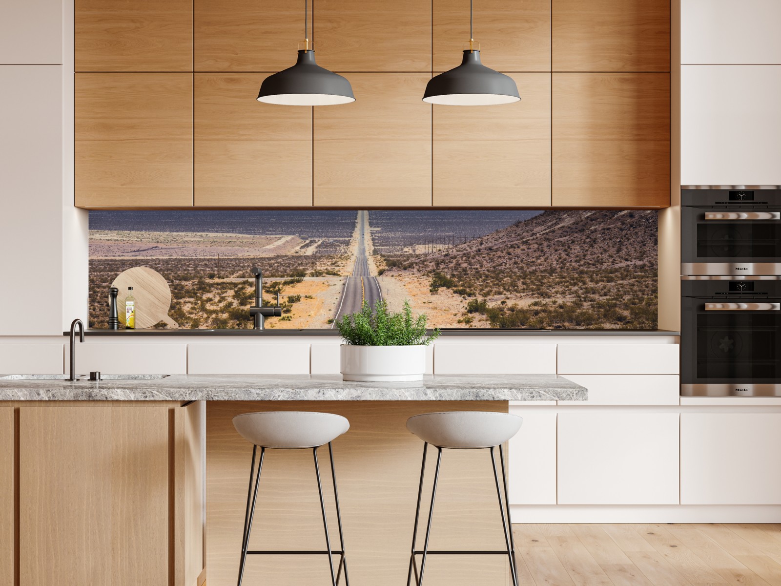 Naklejka repozycjonowalna Niekończąca się droga przez pustynię do gór