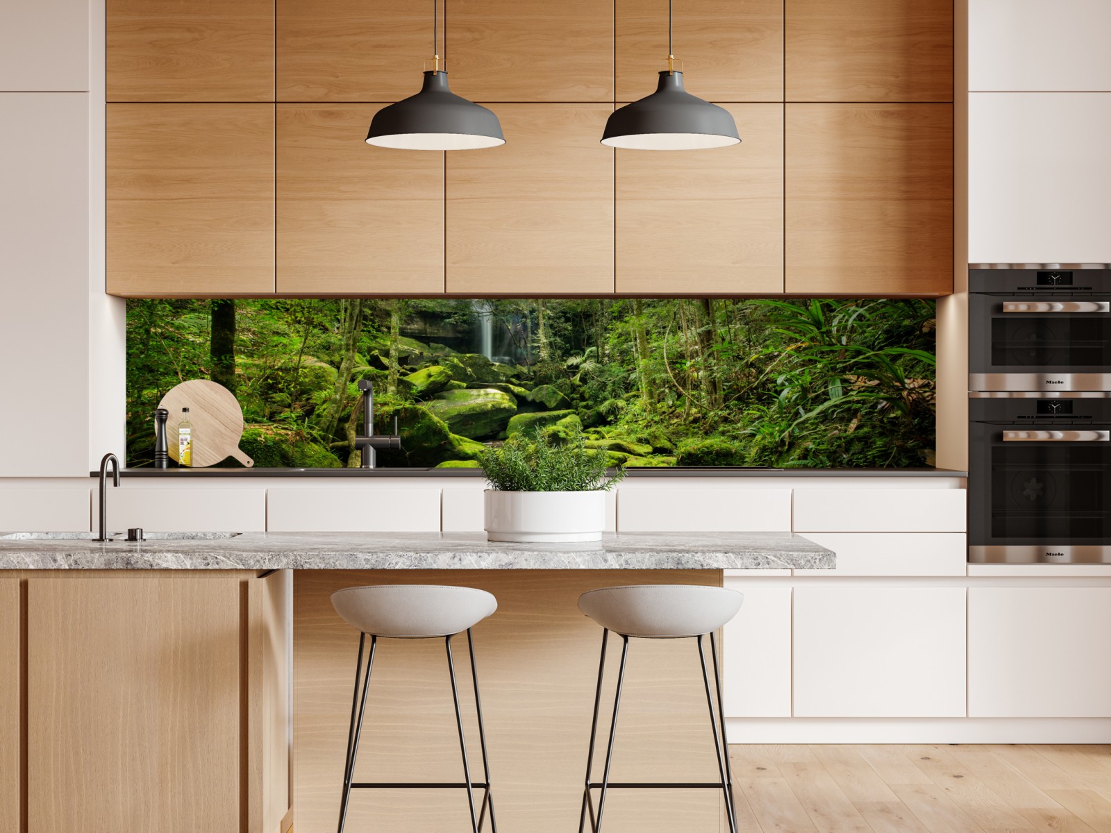 Naklejka repozycjonowalna Bujny mech i wodospad w tropikalnym lesie