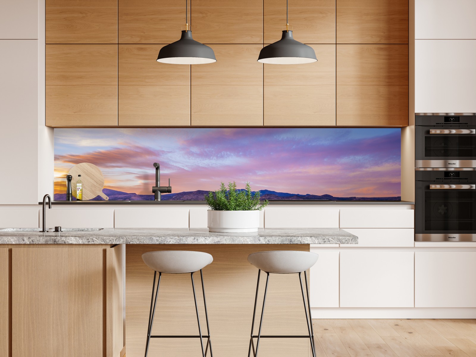 Naklejka repozycjonowalna Pastelowy zachód słońca nad pustynnymi górami