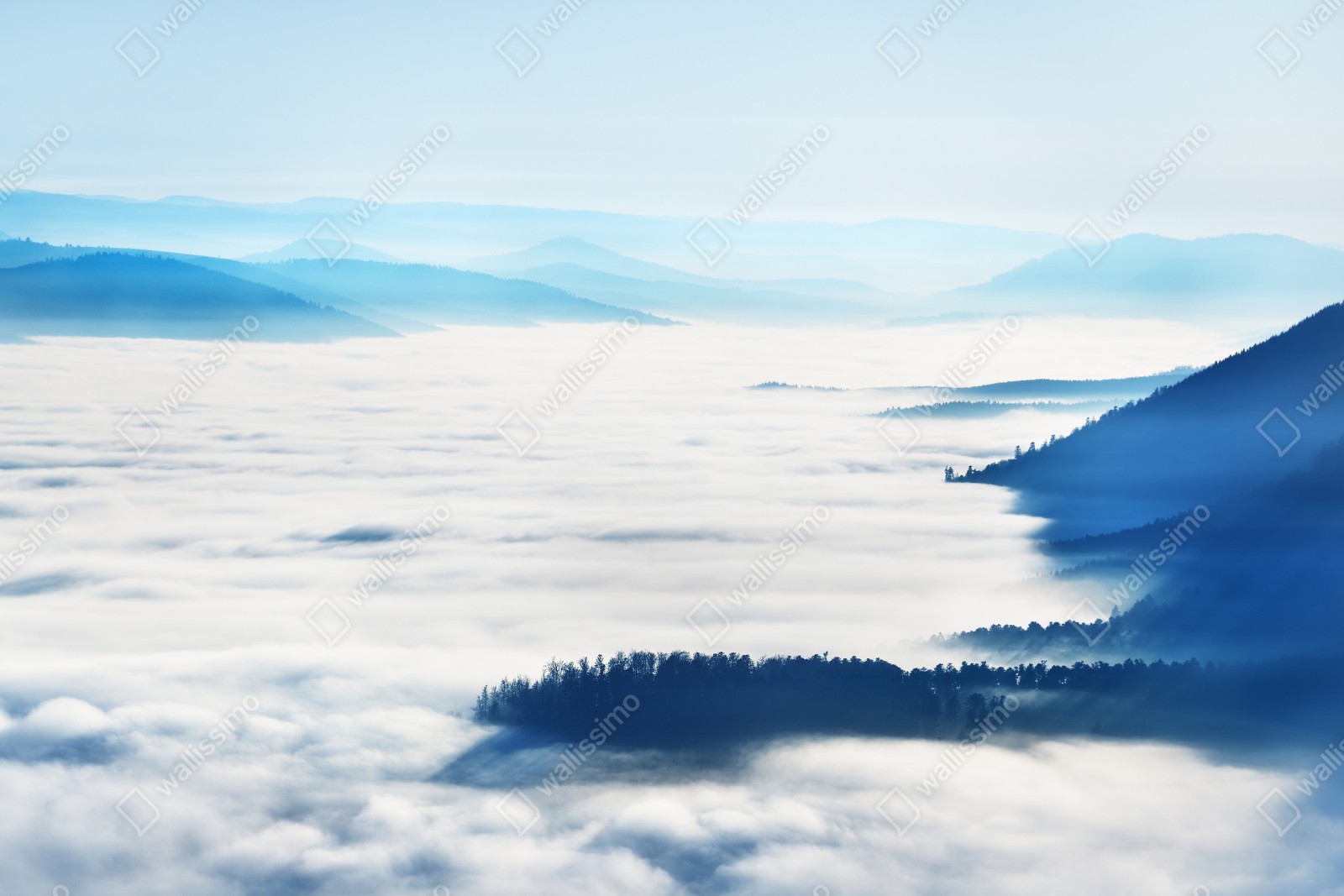 Naklejka repozycjonowalna Mglista panorama górska nad doliną