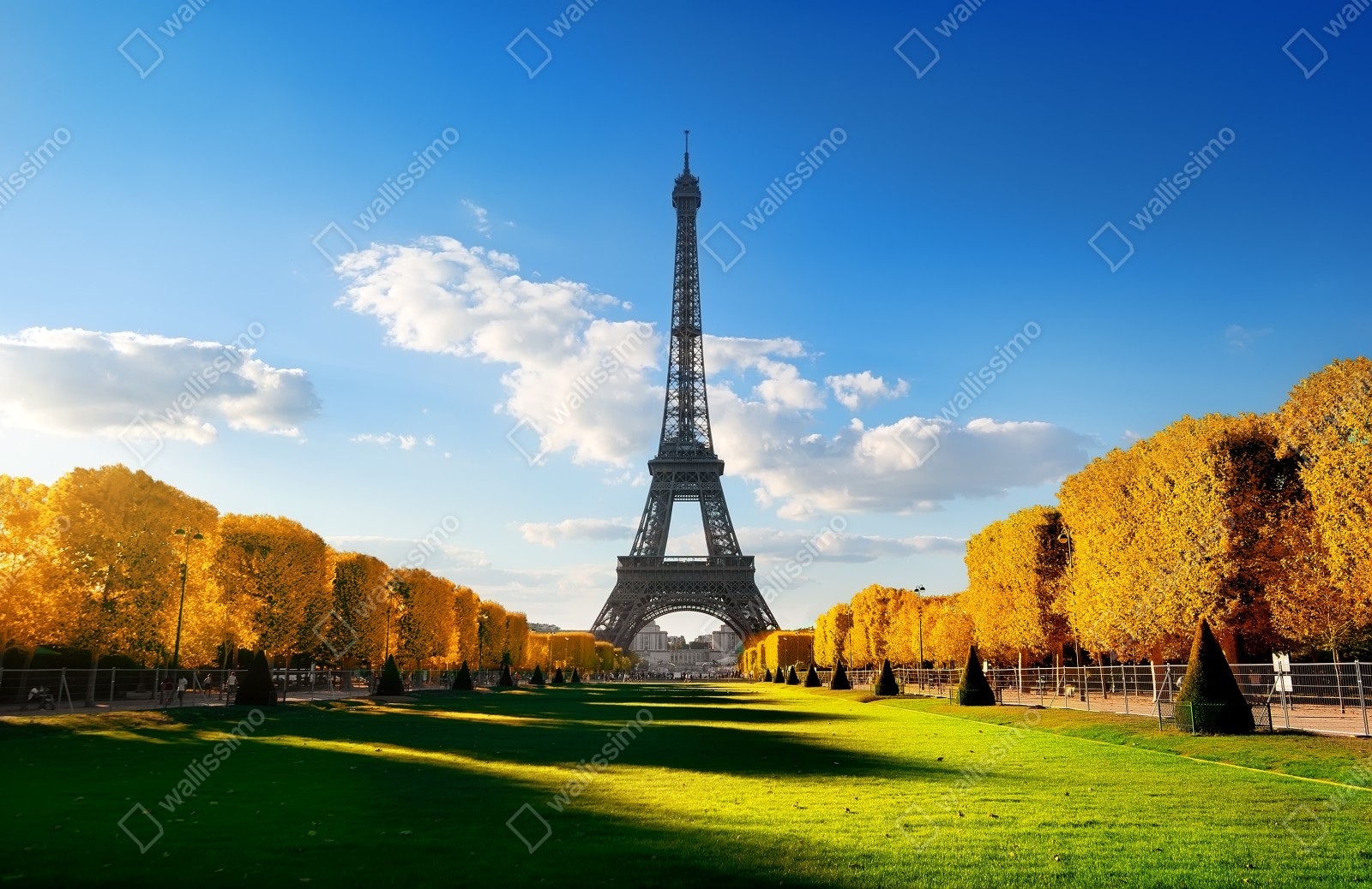 Naklejka repozycjonowalna Wiosna na Champs de Mars, Wieża Eiffla, Paryż