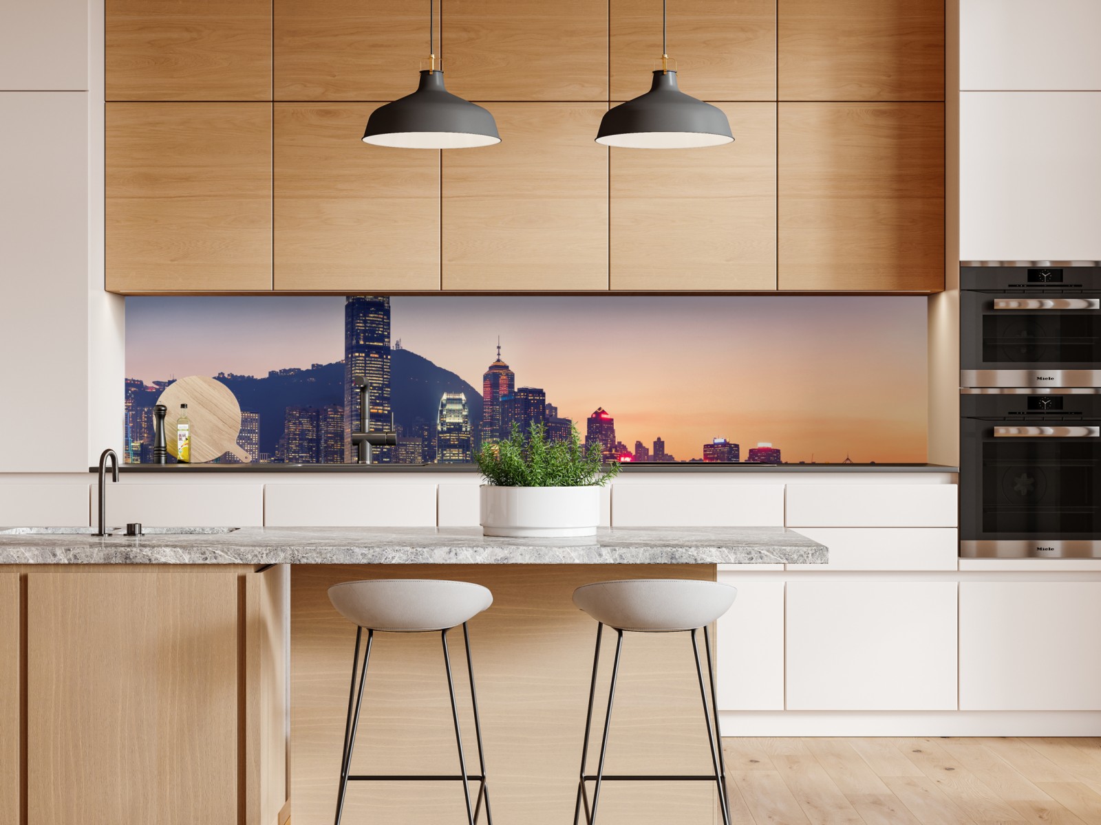 Naklejka repozycjonowalna Hongkong panorama miasta o zmierzchu