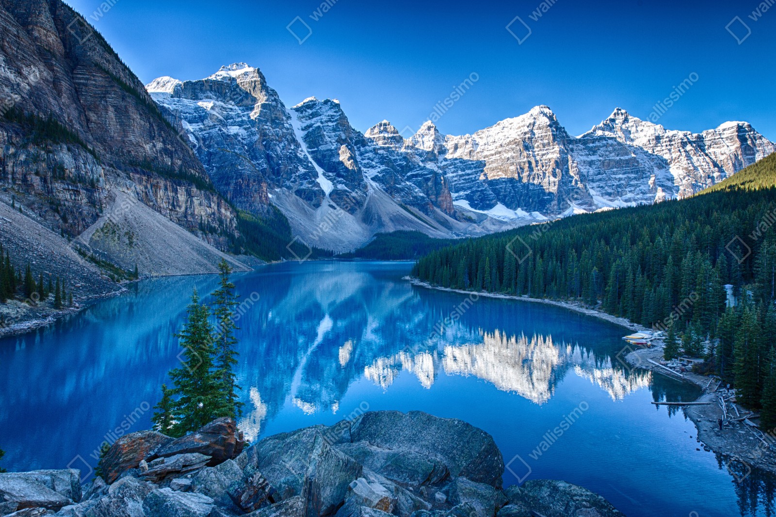 Naklejka repozycjonowalna Spokojne jezioro górskie z odbiciem
