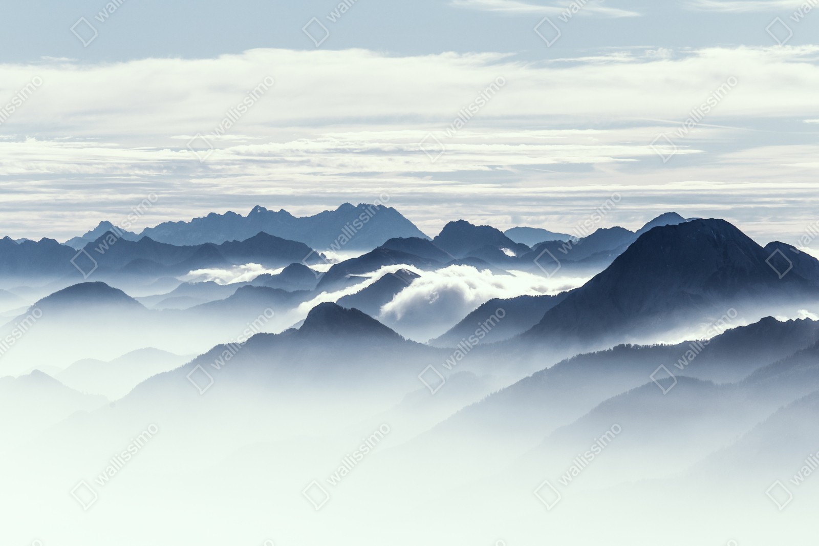 Naklejka repozycjonowalna Mglista warstwa gór o świcie