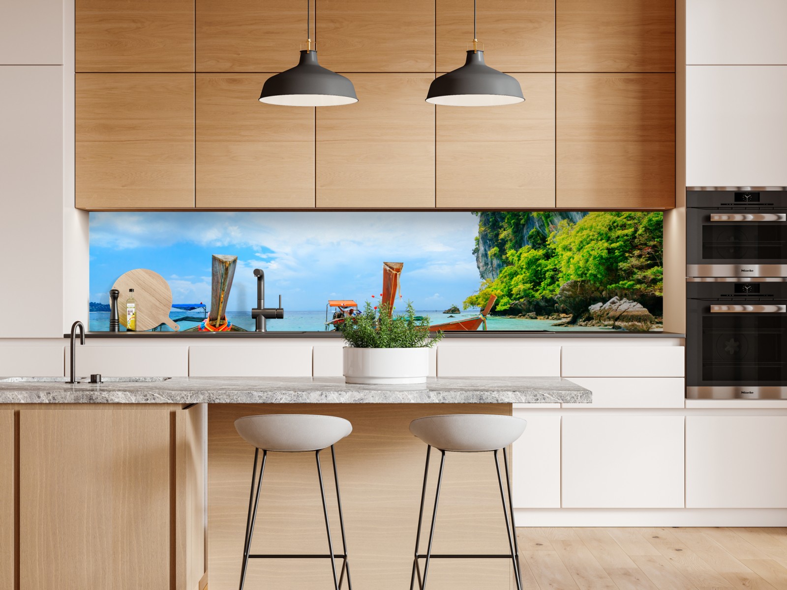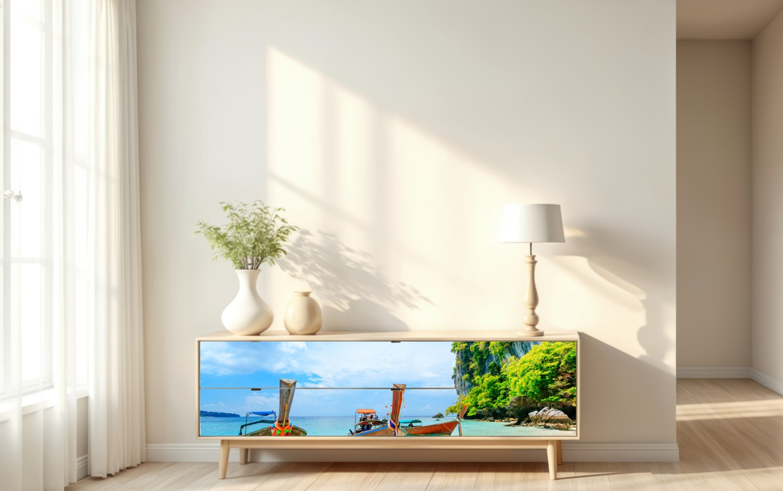 Naklejka repozycjonowalna Łodzie longtail na turkusowej plaży w Phuket