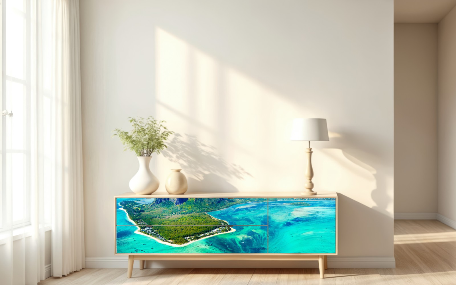 Naklejka repozycjonowalna Turkusowa laguna z lotu ptaka, Mauritius