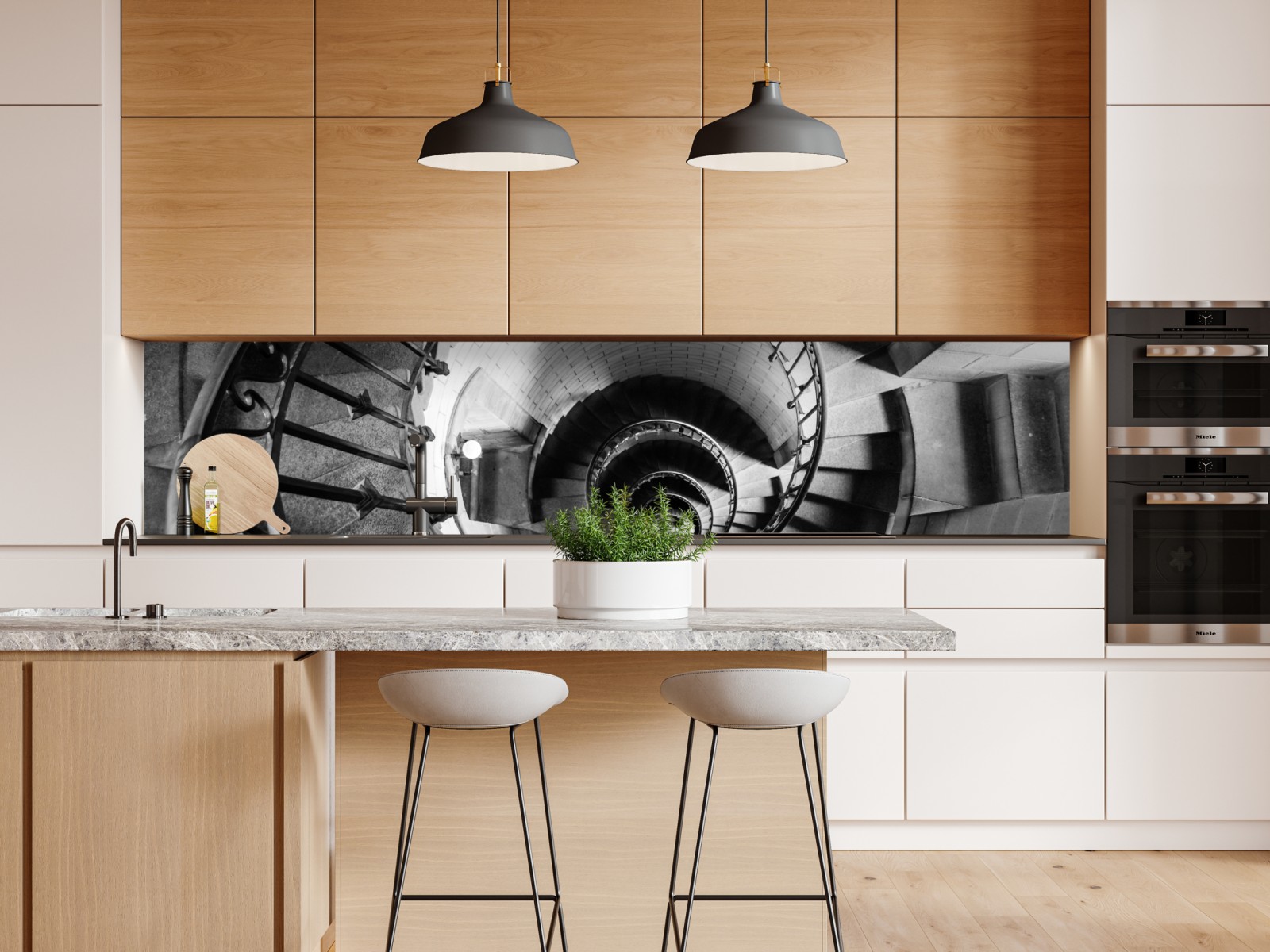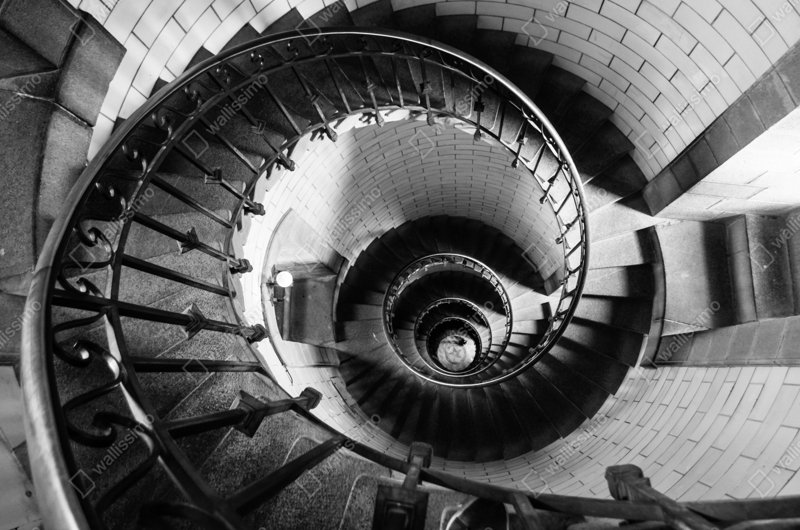 Naklejka repozycjonowalna Spiralne schody w monochromatycznej perspektywie