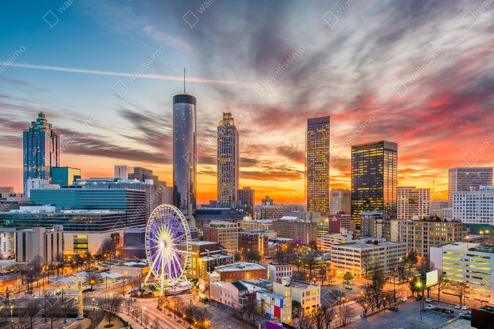 Naklejka repozycjonowalna Atlanta panorama miasta przy zachodzie słońca