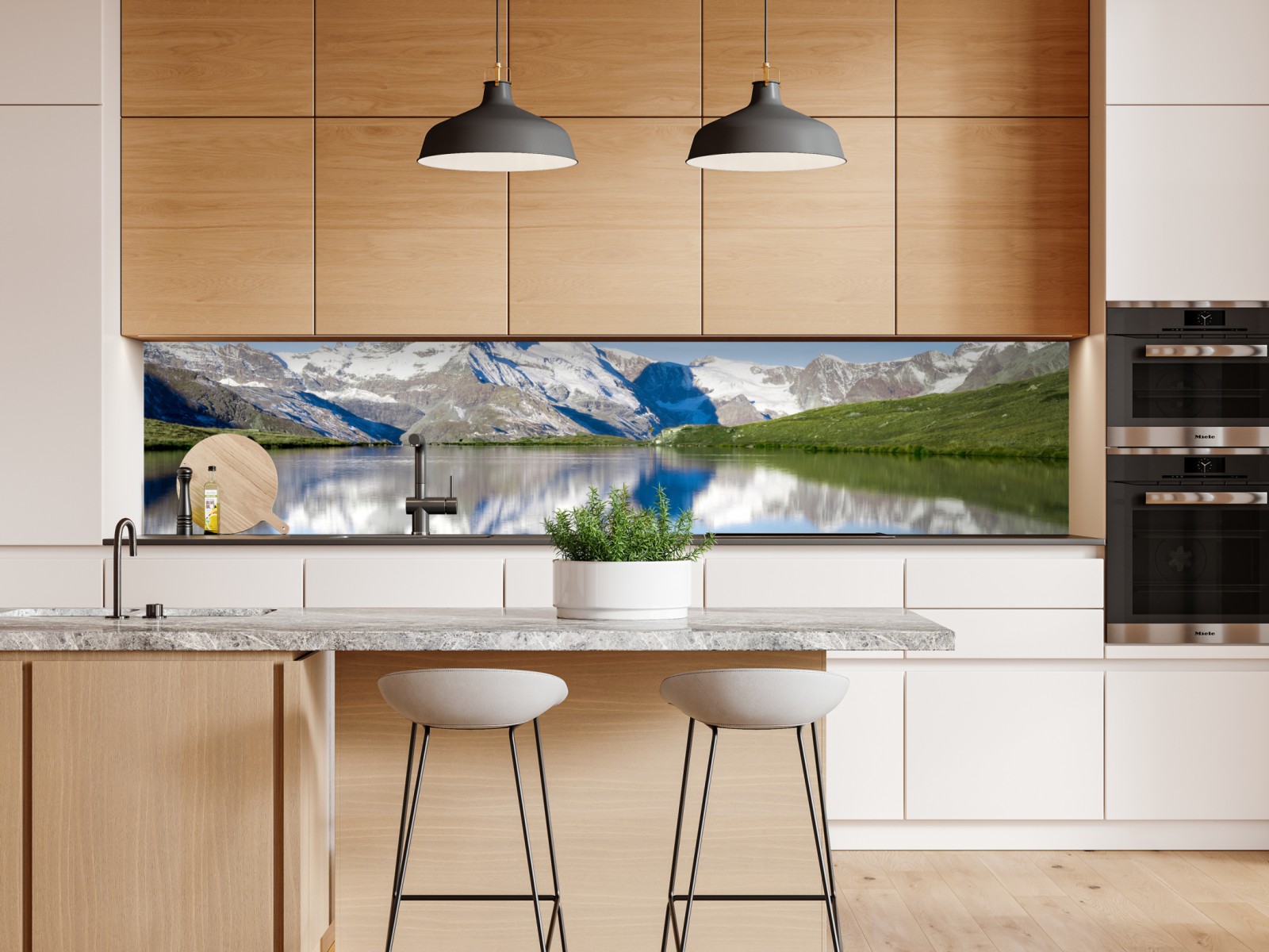 Naklejka repozycjonowalna Majestatyczne odbicie góry nad alpejskim jeziorem