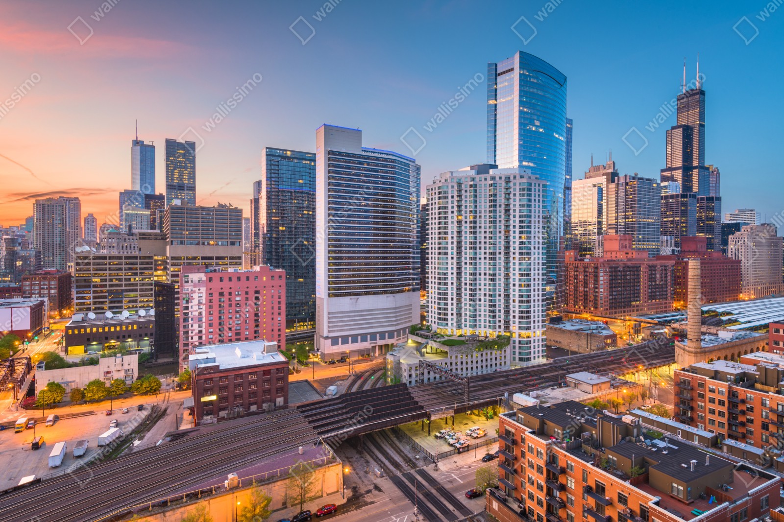 Naklejka repozycjonowalna Panorama Chicago o zmierzchu