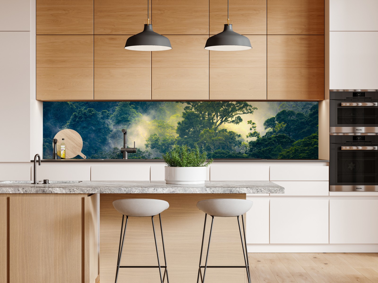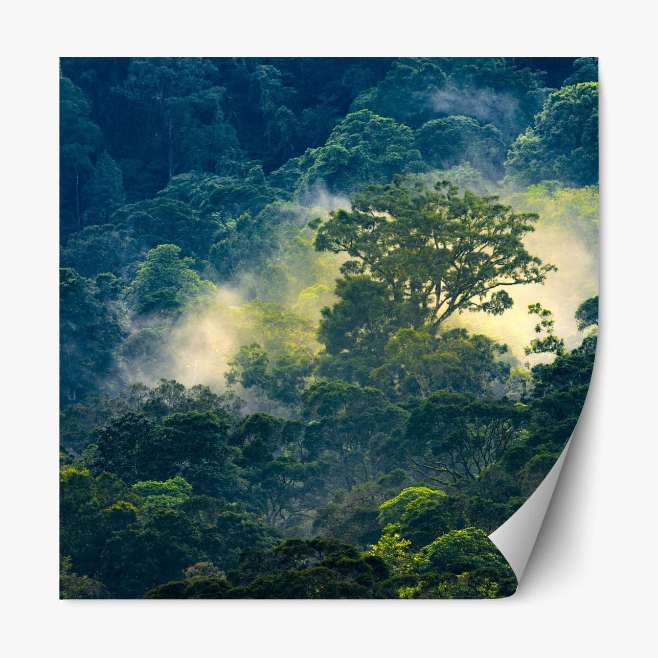 Naklejka repozycjonowalna Mglisty las deszczowy z koronami drzew