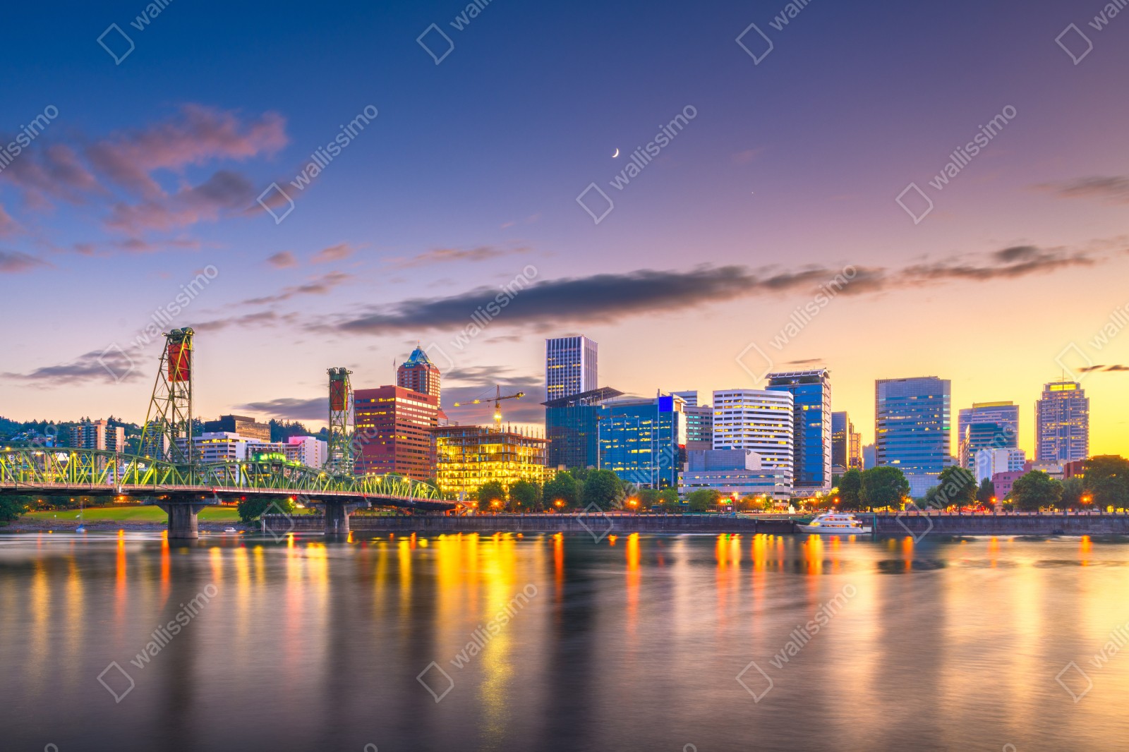 Naklejka repozycjonowalna Portland panorama miasta o zmierzchu nad rzeką Willamette