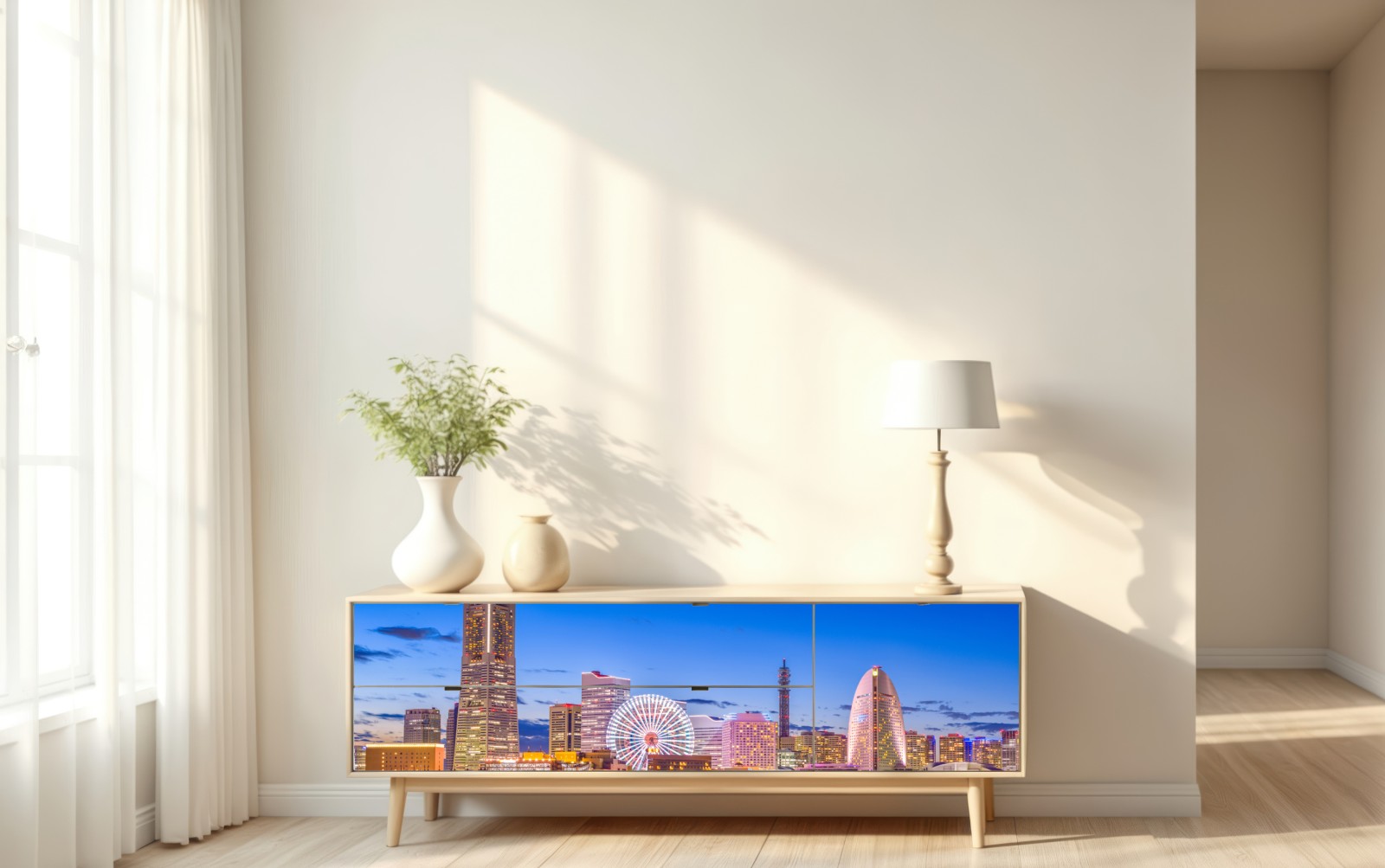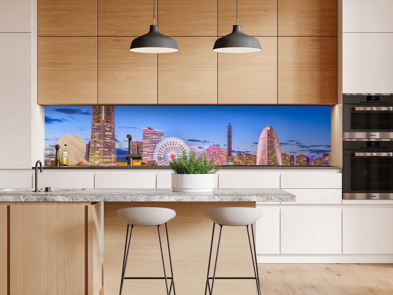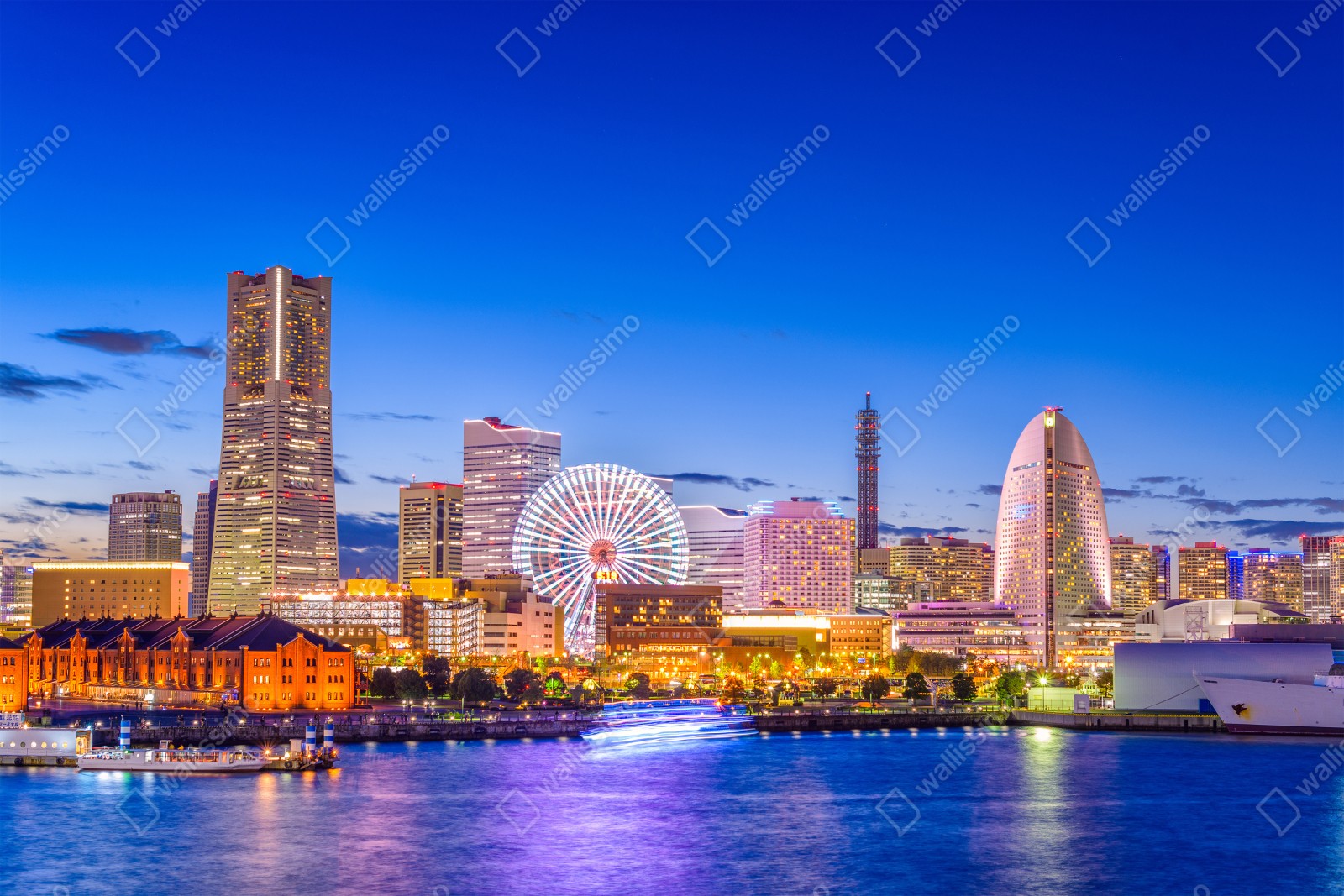 Naklejka repozycjonowalna Yokohama panorama miasta o zmierzchu