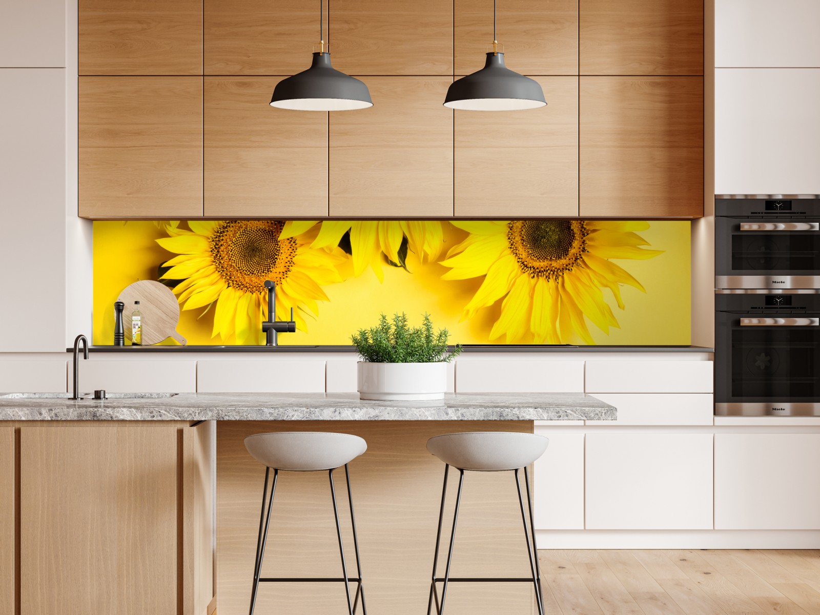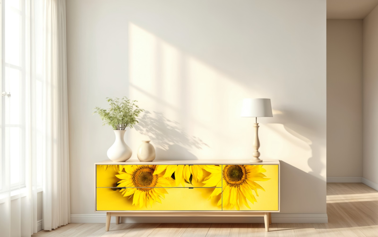 Naklejka repozycjonowalna Jasny bukiet słoneczników na żółtym tle