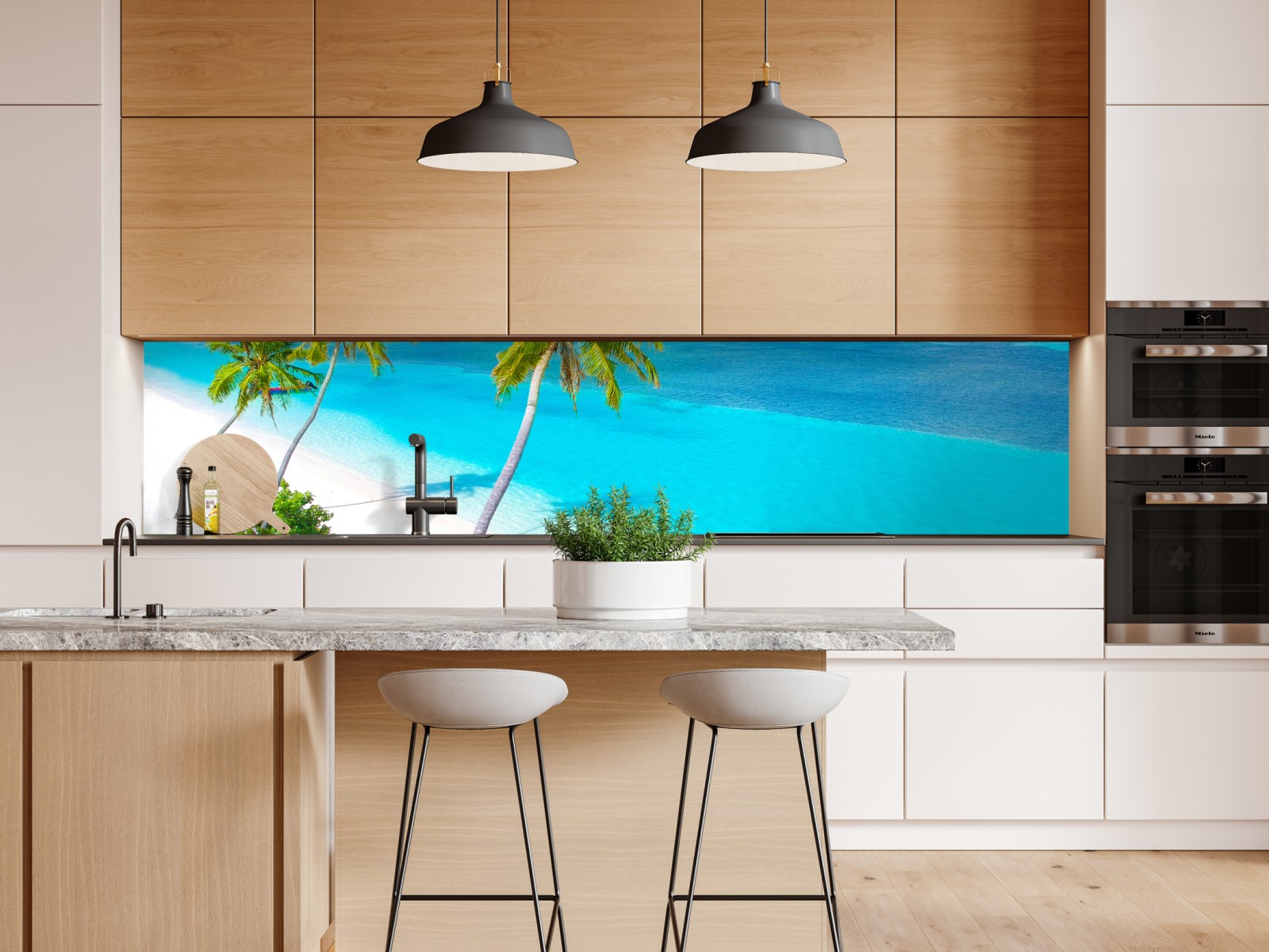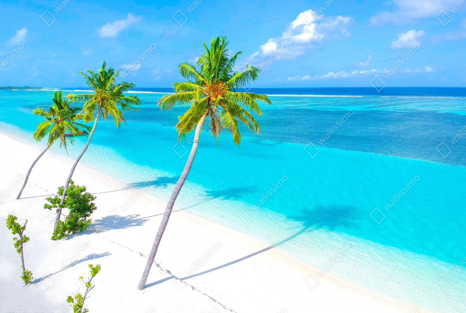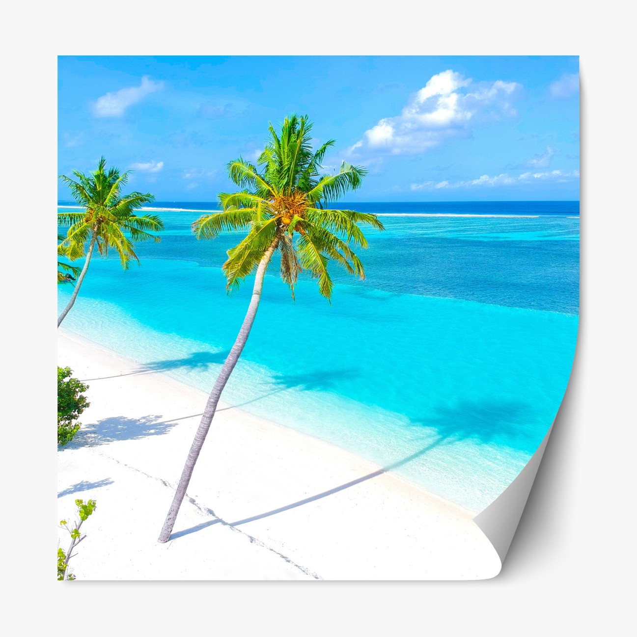 Naklejka repozycjonowalna Tropikalna turkusowa plaża z palmami