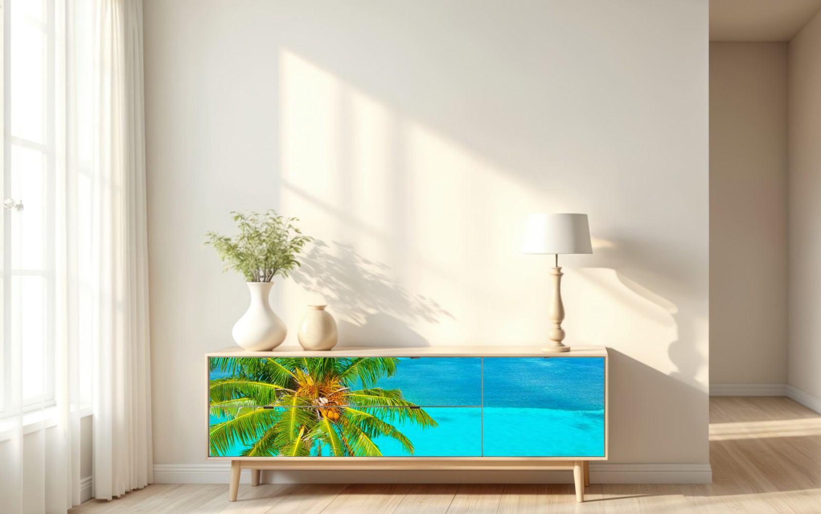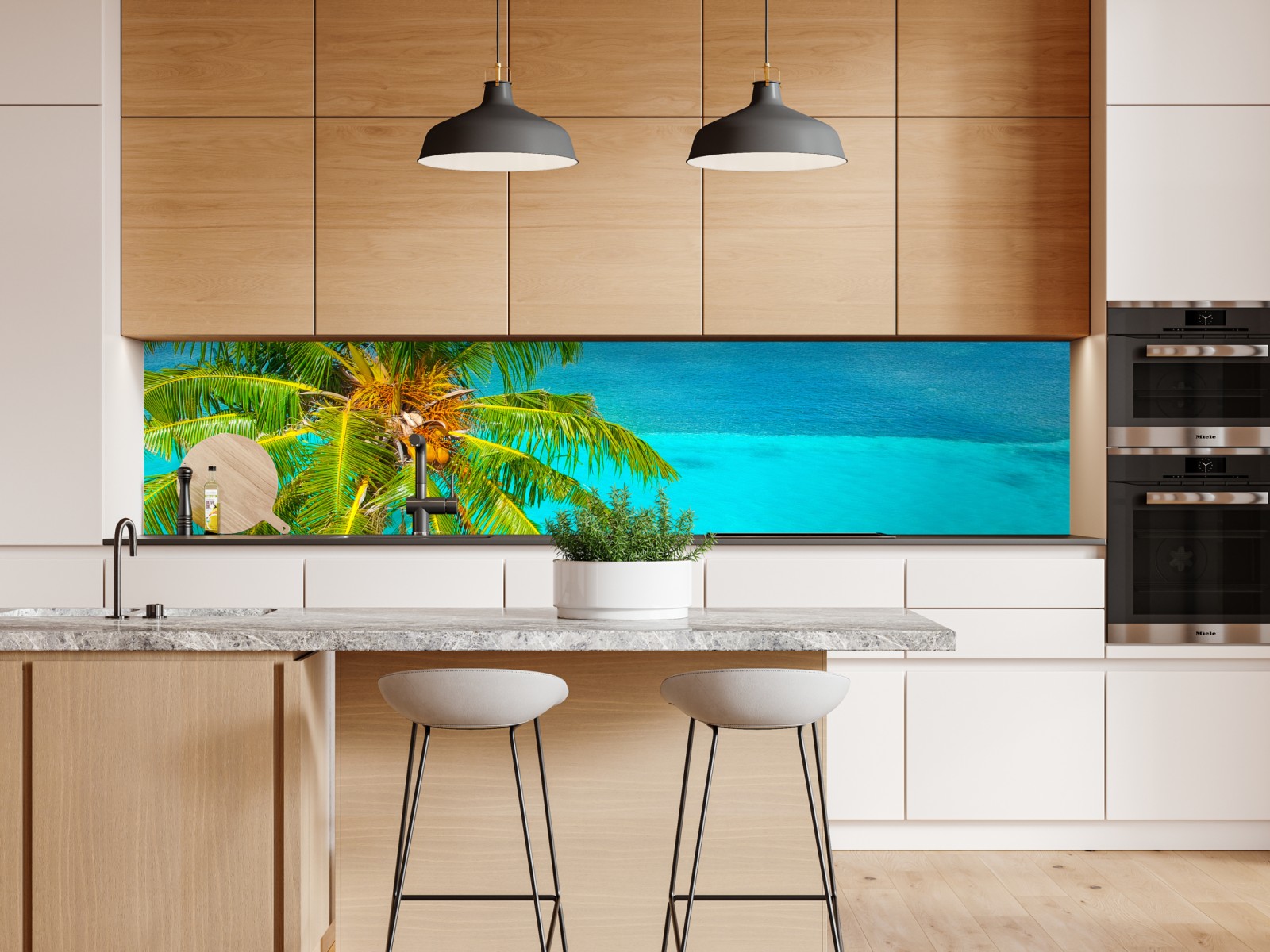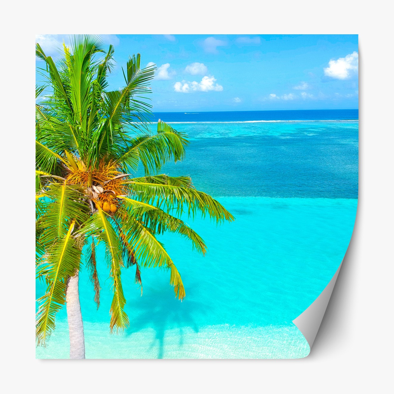 Naklejka repozycjonowalna Tropikalna turkusowa plaża z palmą