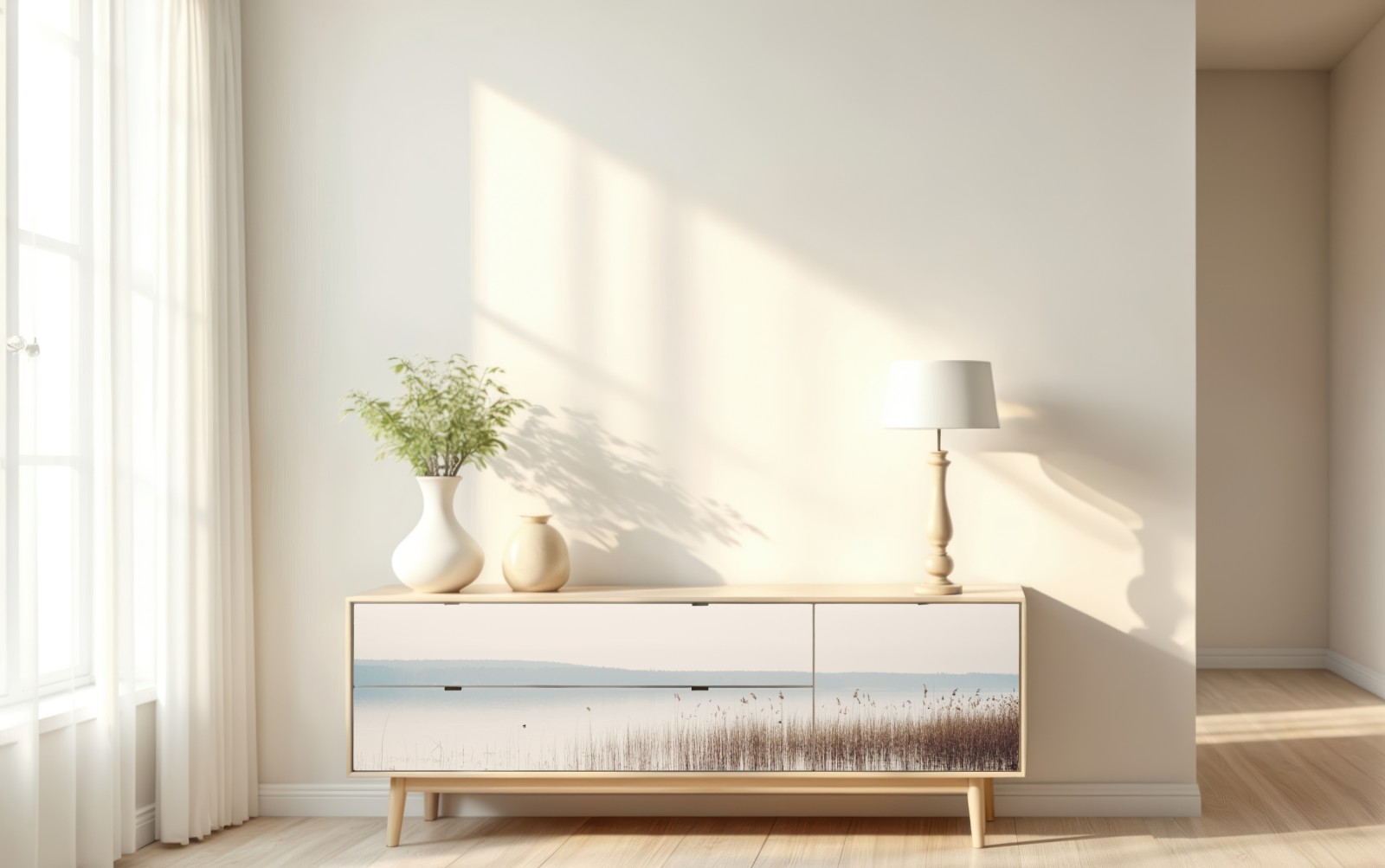 Naklejka repozycjonowalna Spokojne trzcinowisko nad jeziorem