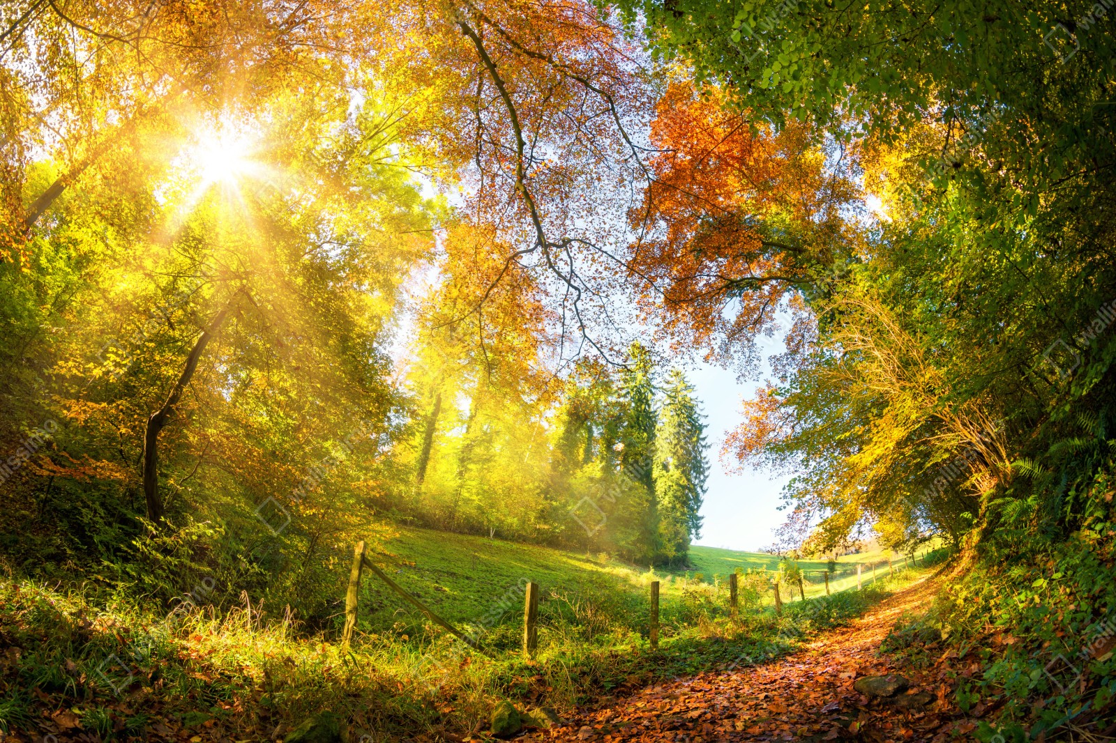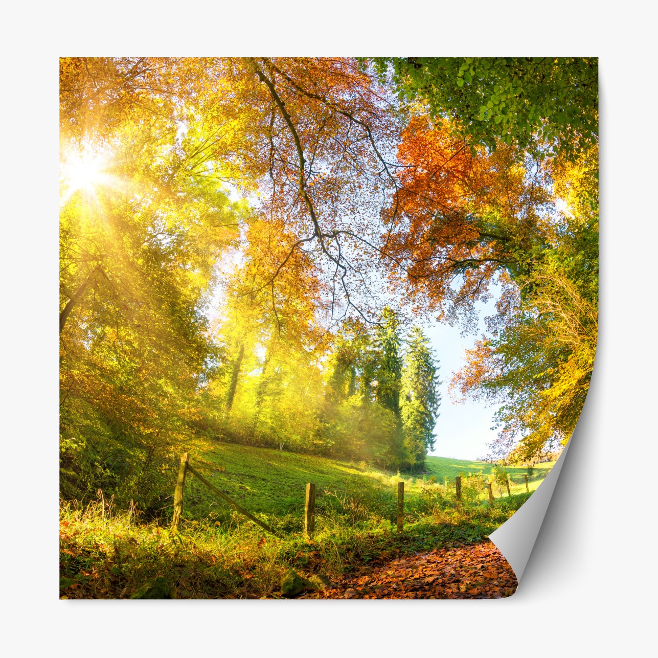 Naklejka repozycjonowalna Złota jesienna ścieżka przez las