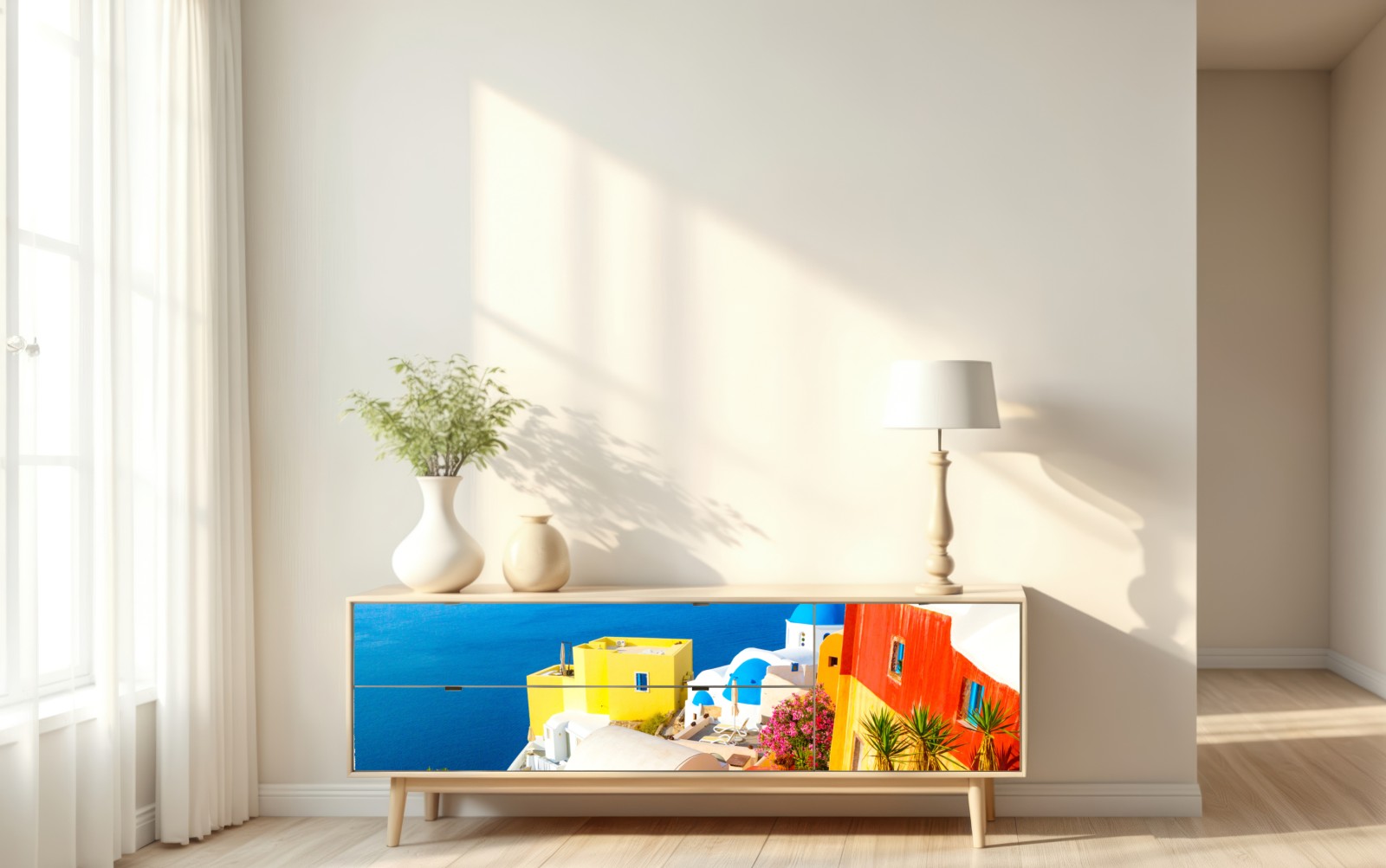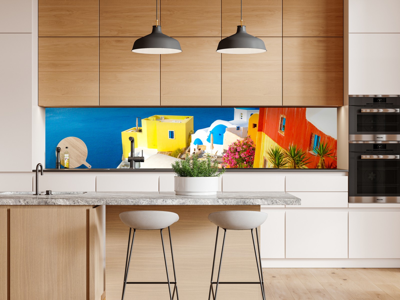 Naklejka repozycjonowalna Słoneczna Santorini nadmorska wioska