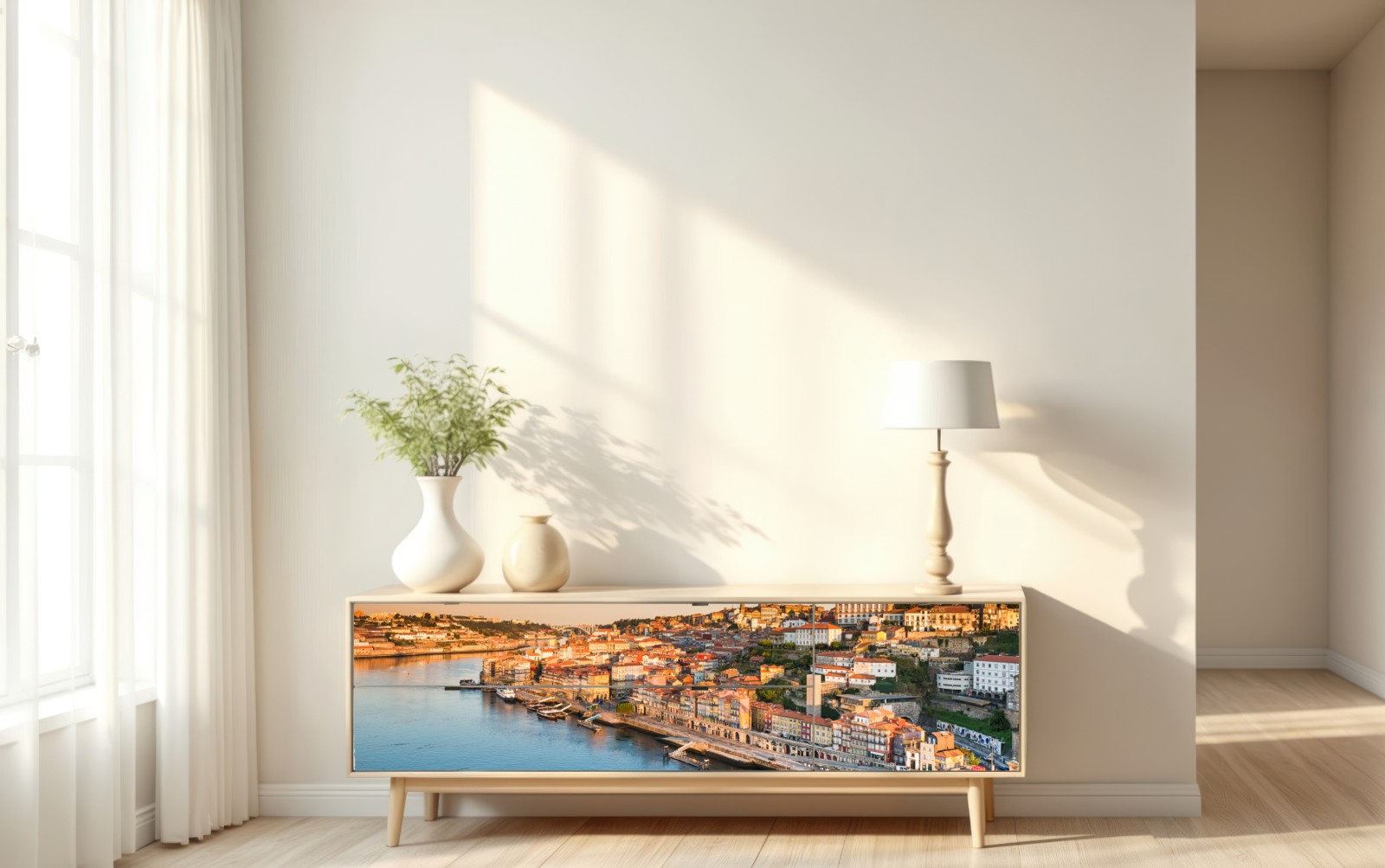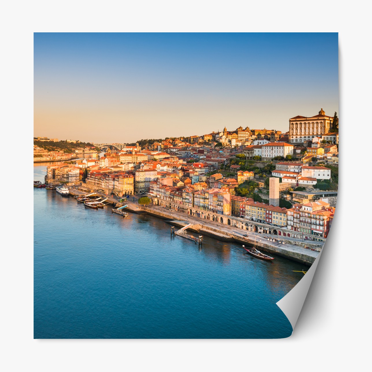 Naklejka repozycjonowalna Słoneczna panorama nabrzeża Porto o zachodzie słońca