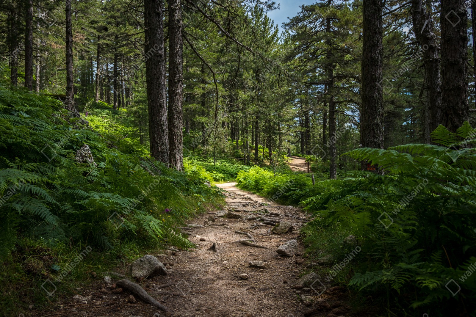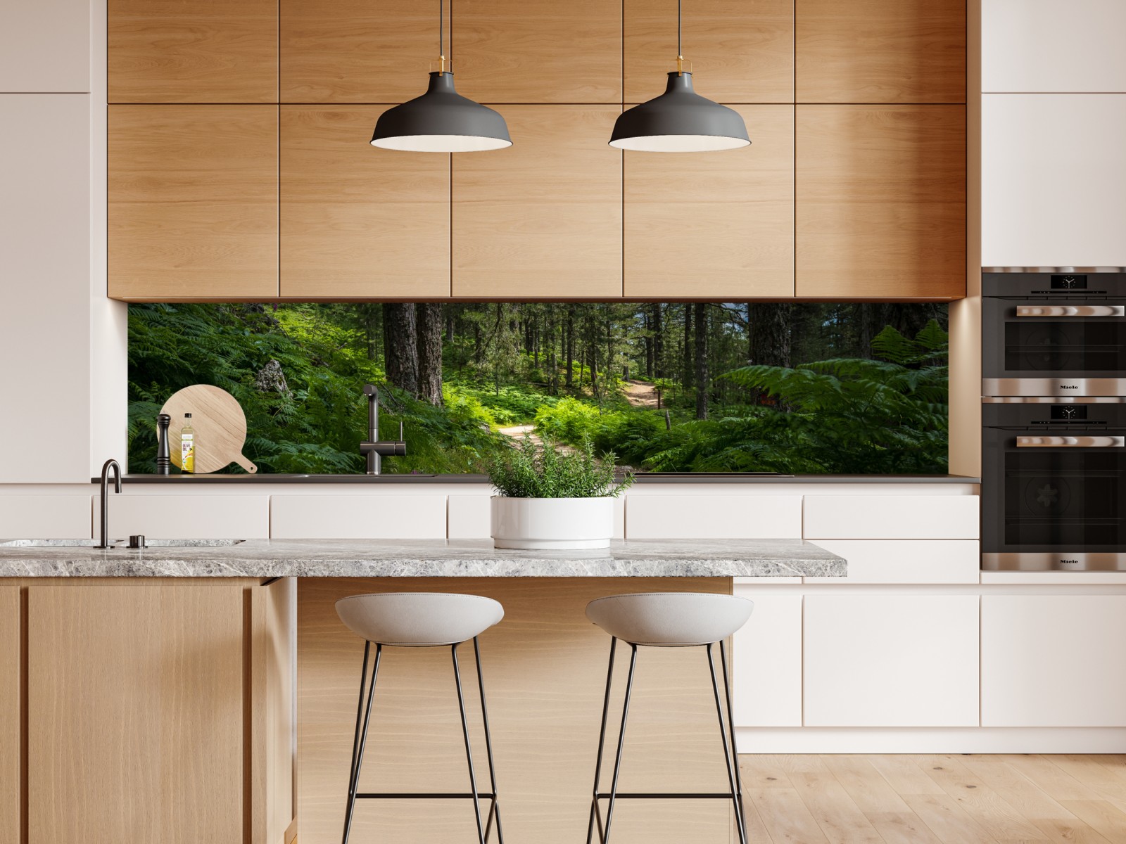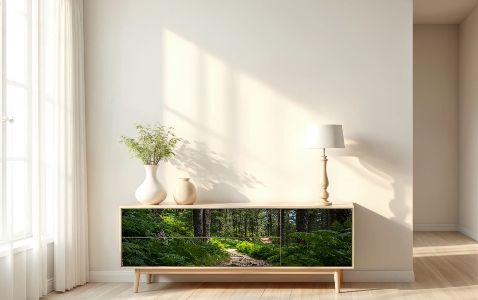 Naklejka repozycjonowalna Spokojna ścieżka leśna wśród bujnej zieleni