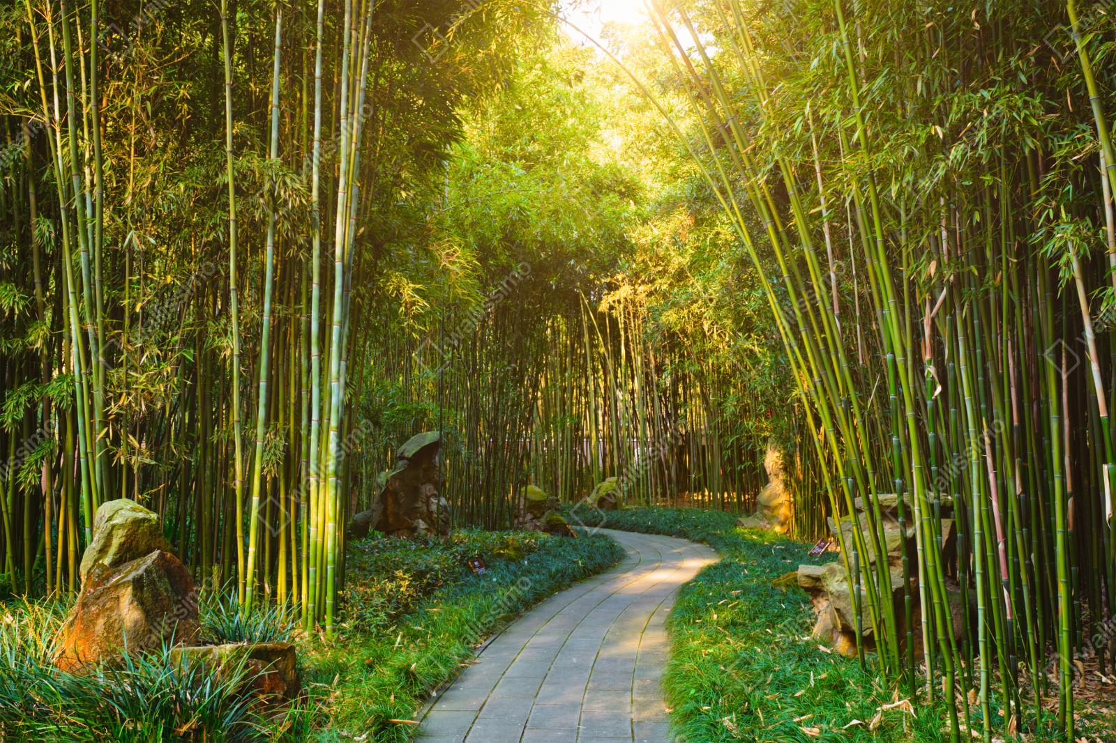 Naklejka repozycjonowalna Spokojna ścieżka w bambusowym lesie