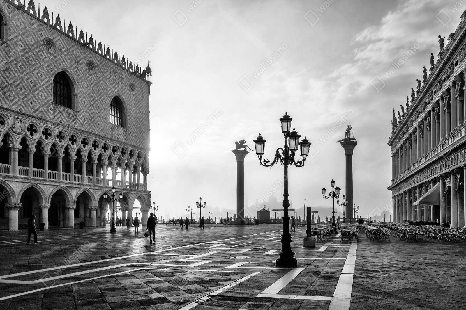 Naklejka repozycjonowalna Wenecja plac w porannej mgle