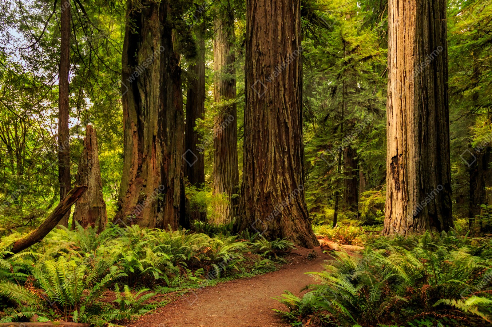 Naklejka repozycjonowalna Kalifornia sekwoje leśna ścieżka