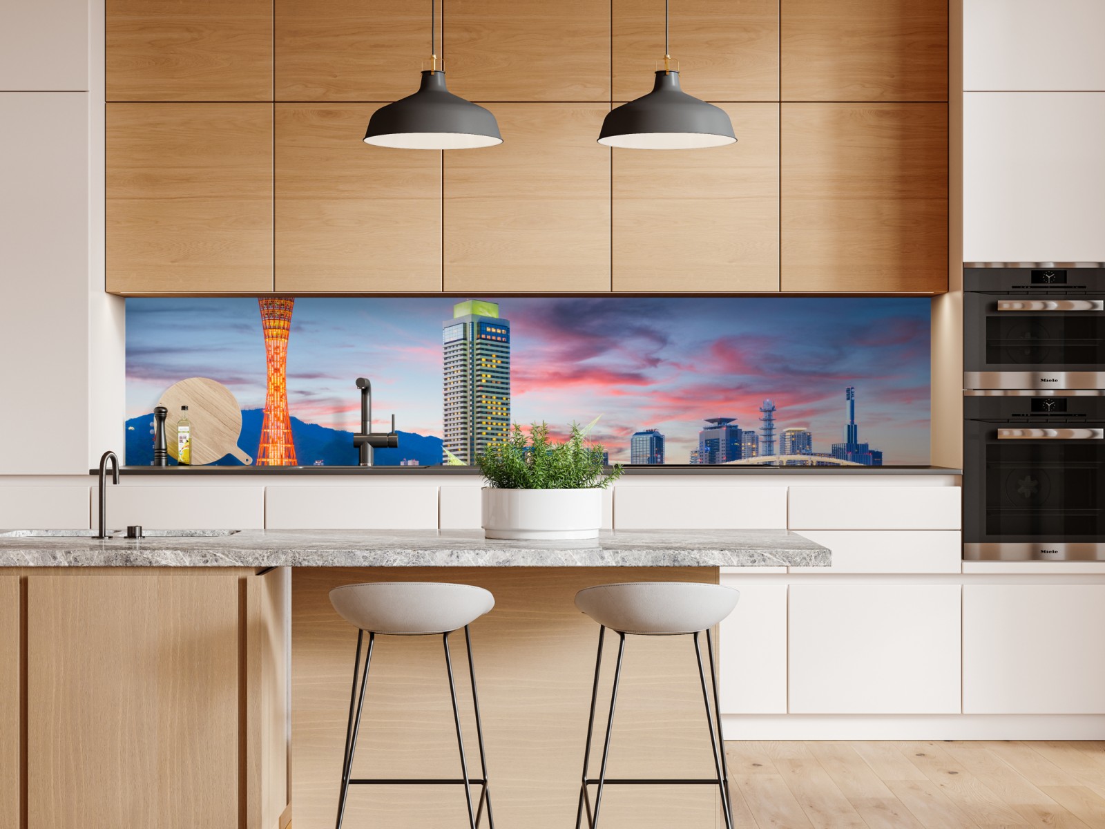 Naklejka repozycjonowalna Kobe panorama portu o zmierzchu