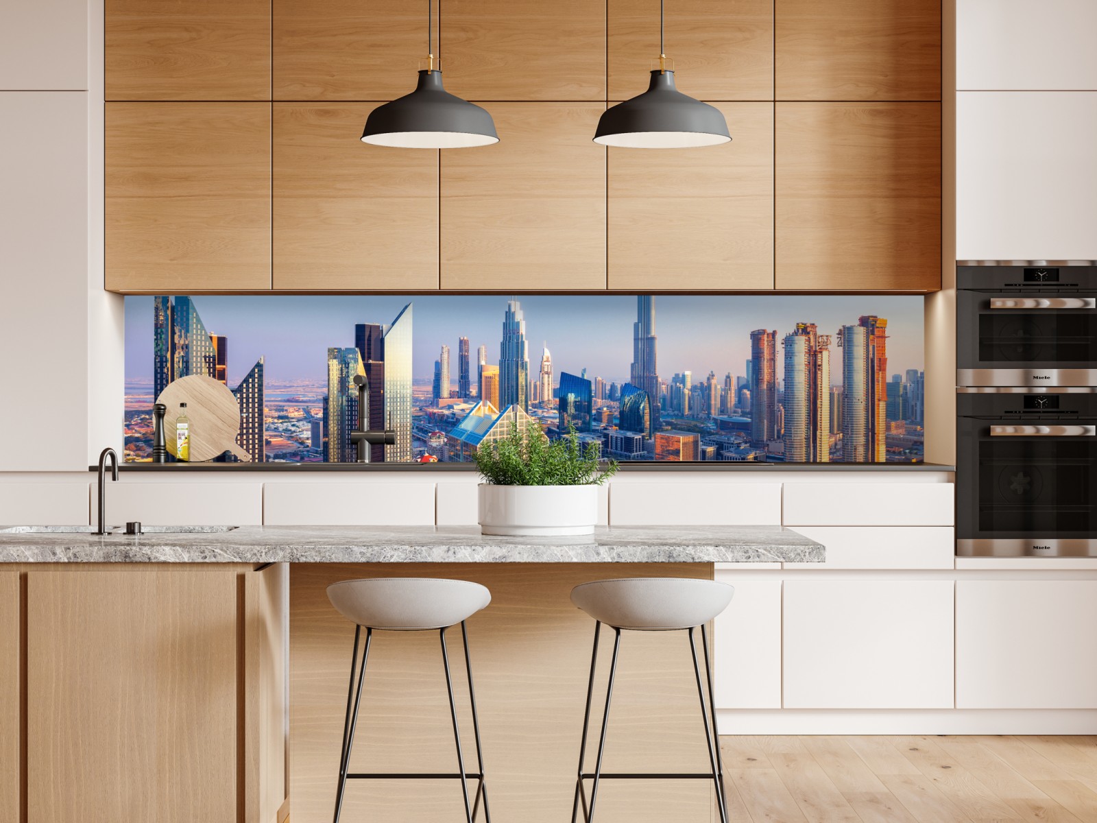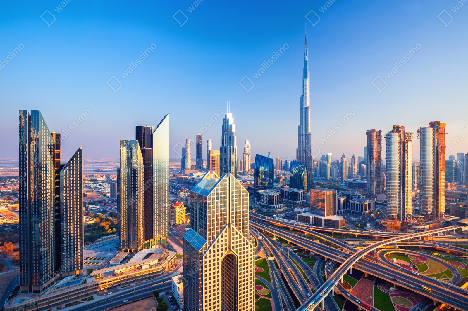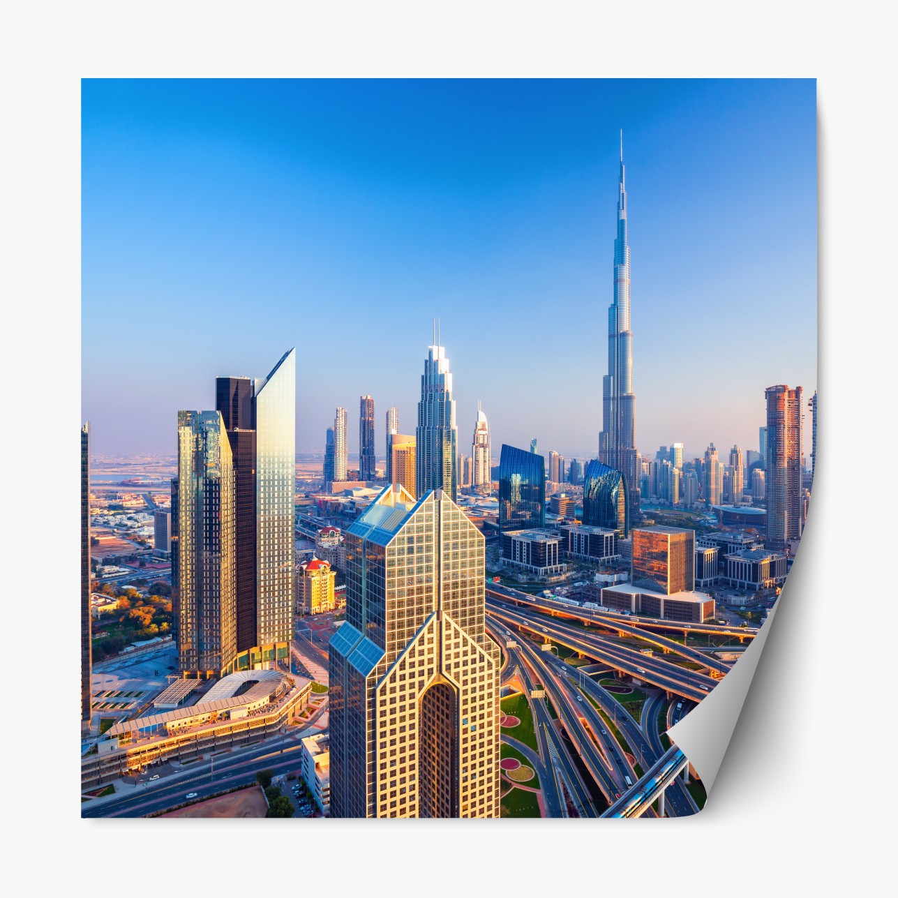 Naklejka repozycjonowalna Panorama Dubaju z Burj Khalifa o zachodzie słońca
