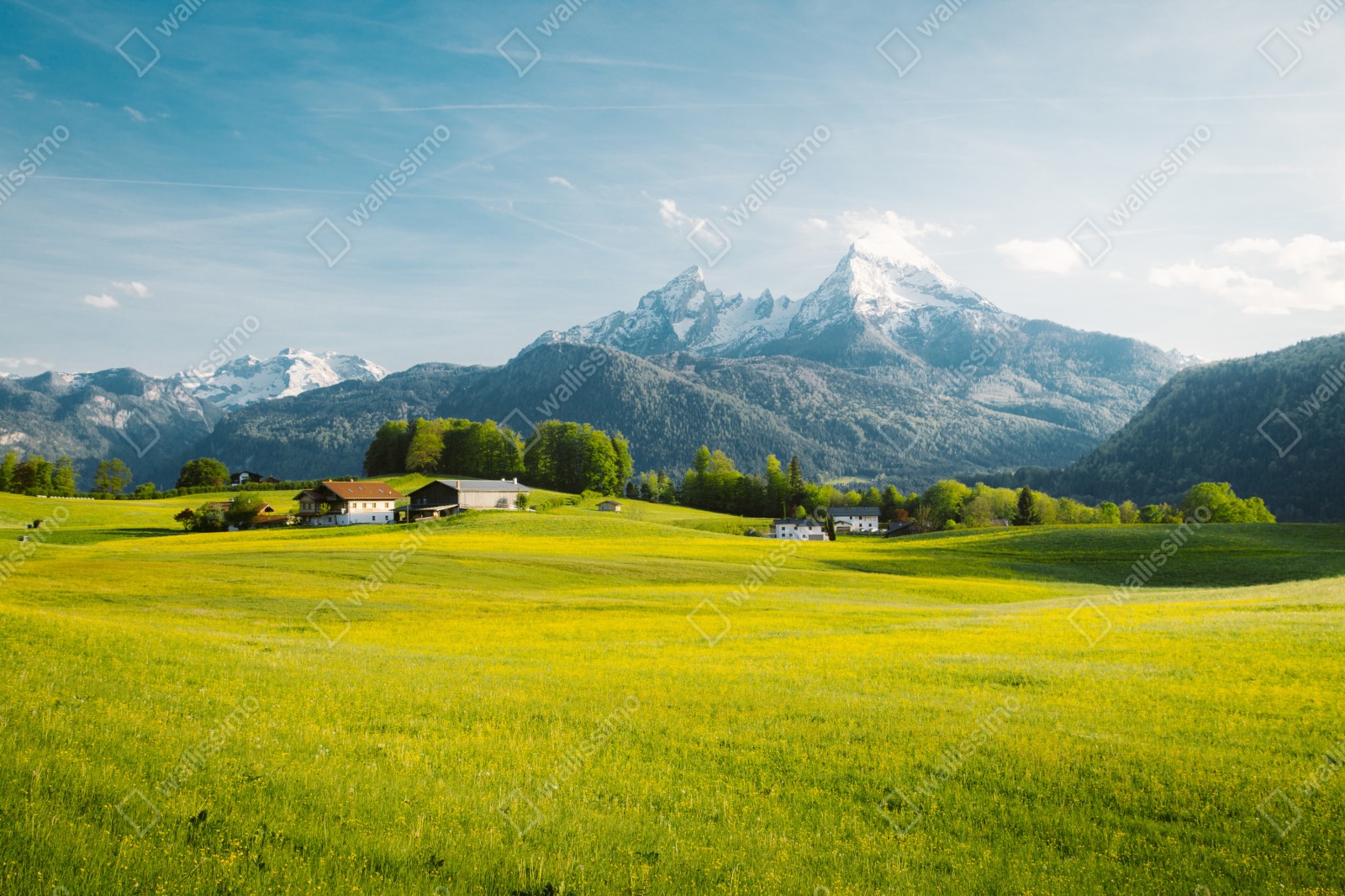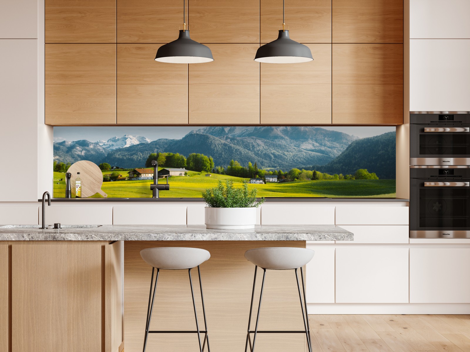 Naklejka repozycjonowalna Alpejska łąka pod ośnieżonymi szczytami