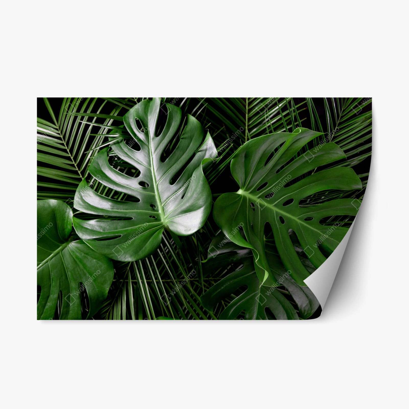 - monstera, dekoracja ścienna, natura, dżungla, zielone liście, tropikalne liście, liście palmowe, botanika, wzór liści, rośliny doniczkowe