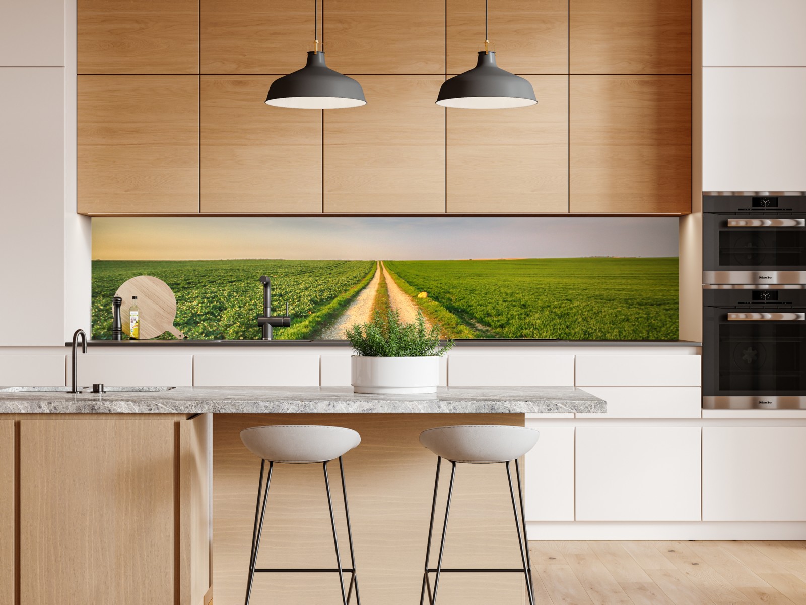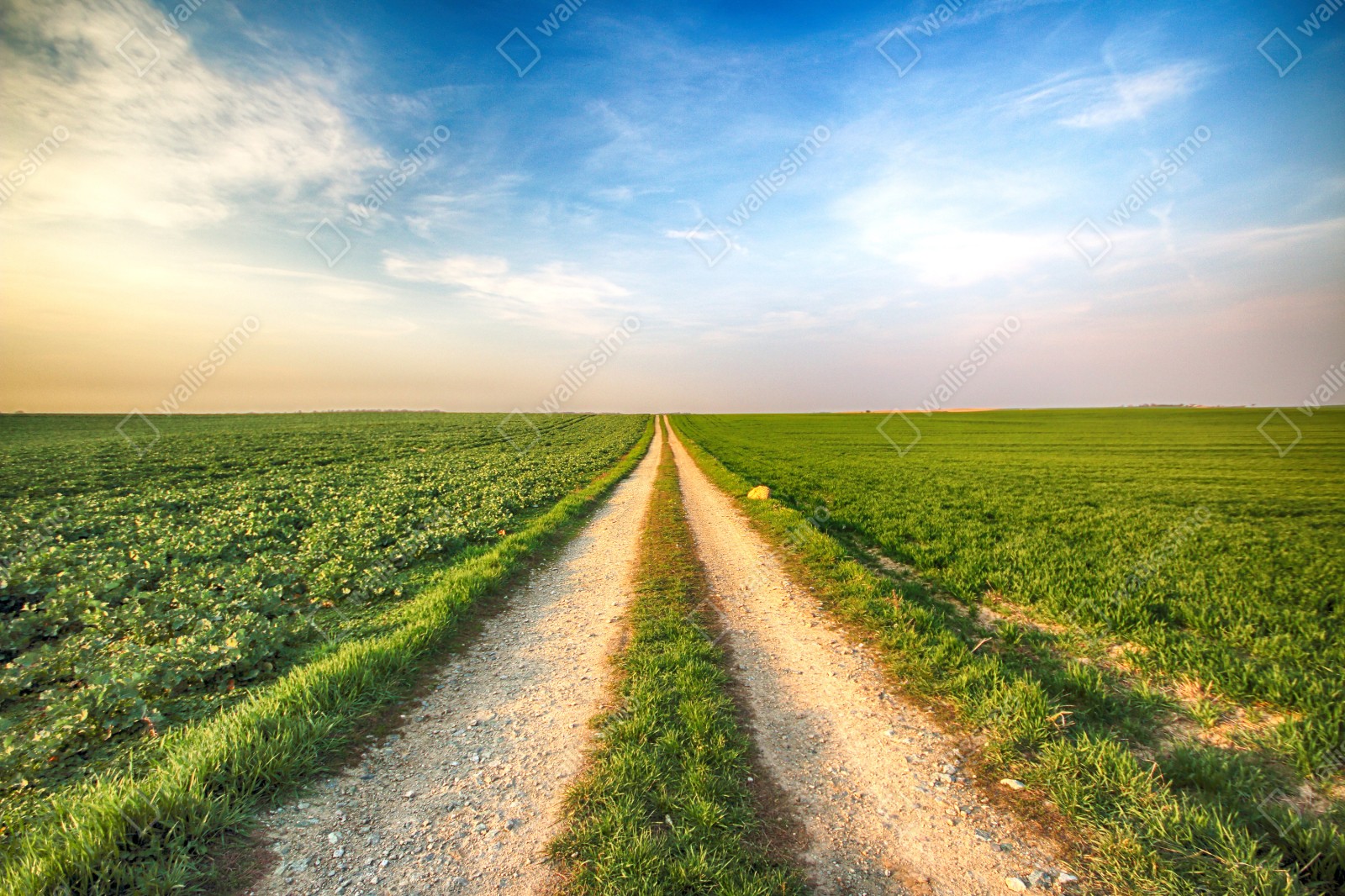 Naklejka repozycjonowalna Polna droga przez zielone pola