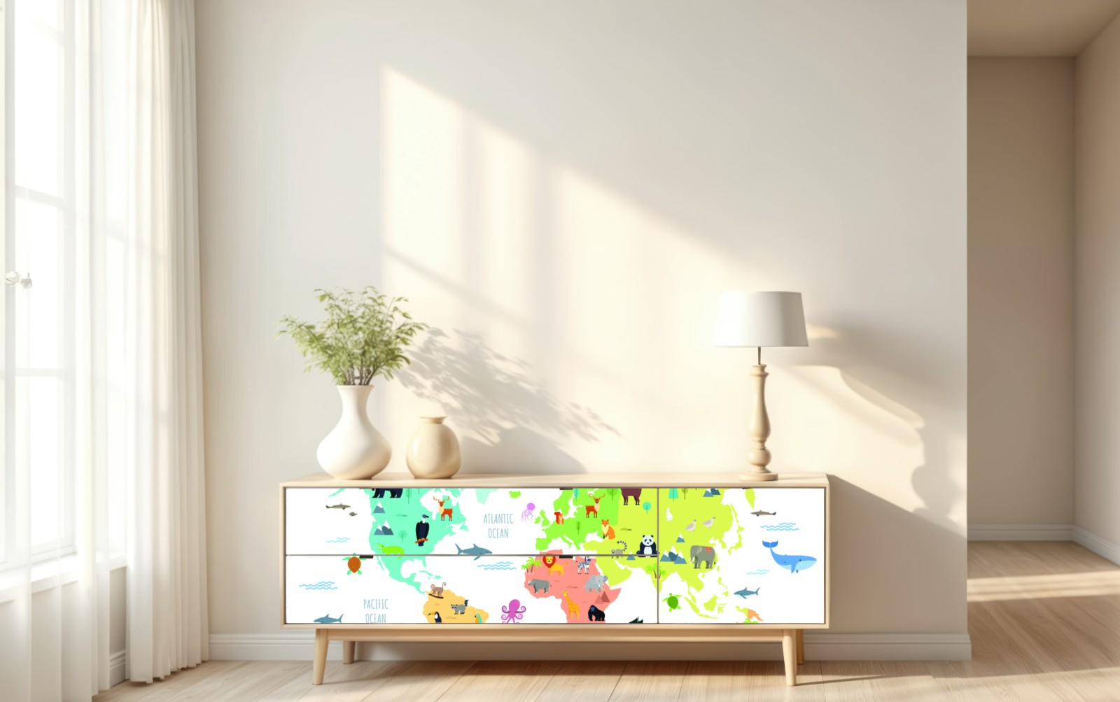 Naklejka repozycjonowalna Ilustrowana mapa świata ze zwierzętami