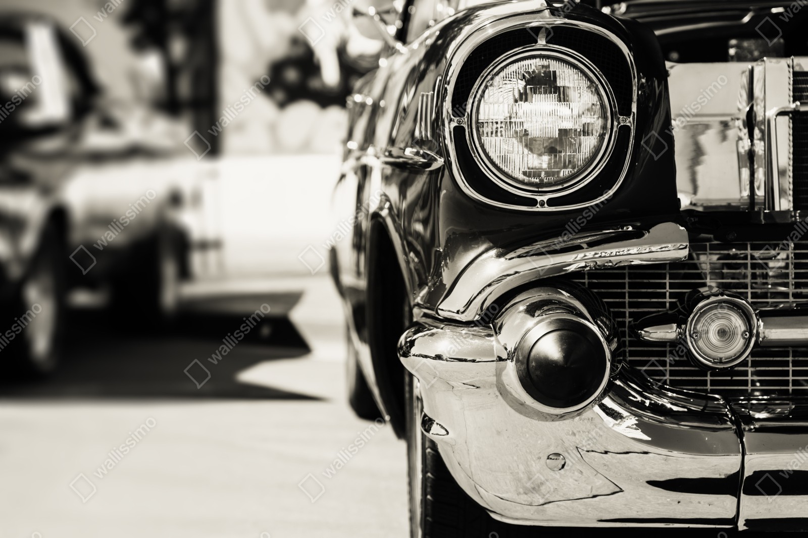Naklejka repozycjonowalna Zabytkowy chromowany samochód zbliżenie