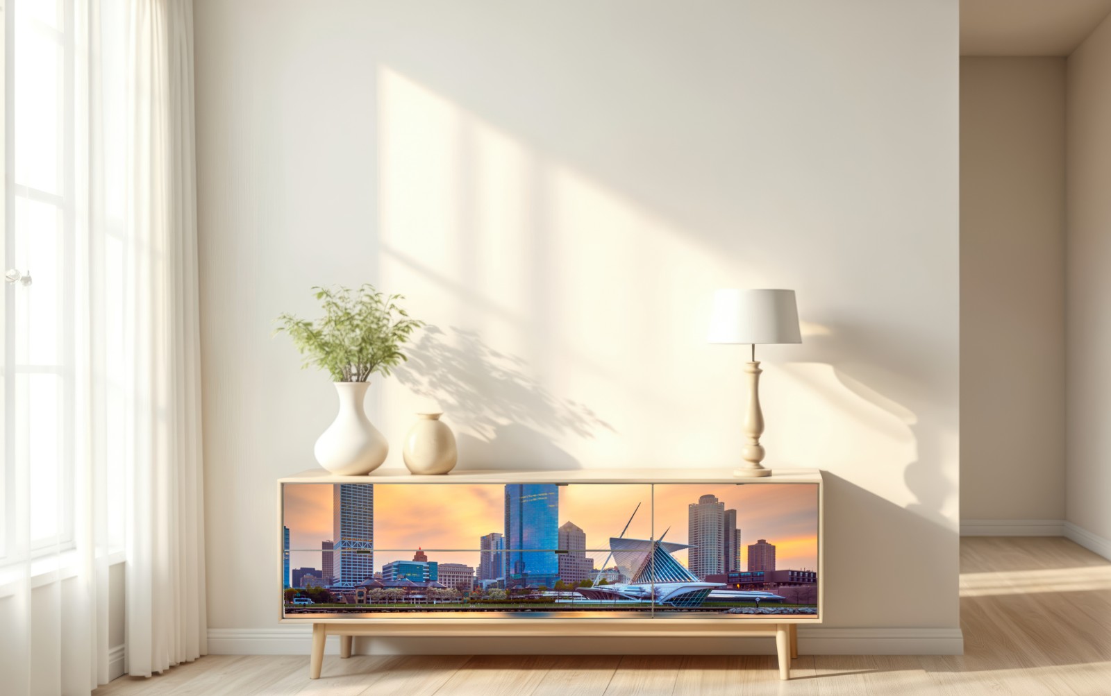 Naklejka repozycjonowalna Milwaukee panorama miasta o zmierzchu