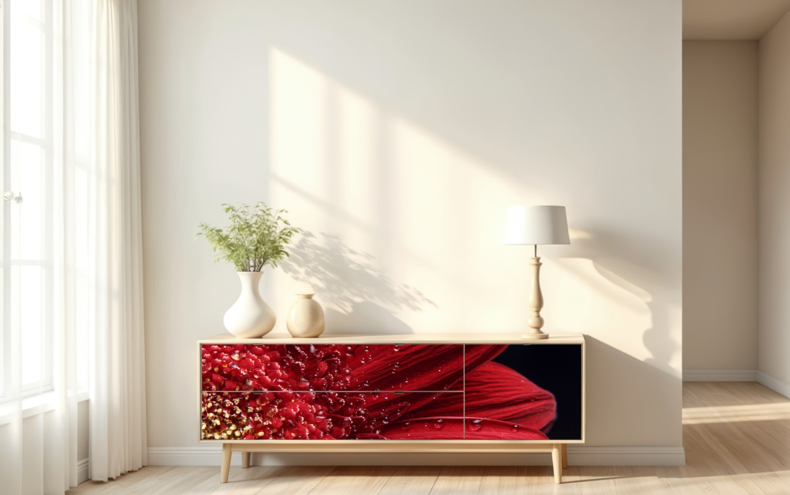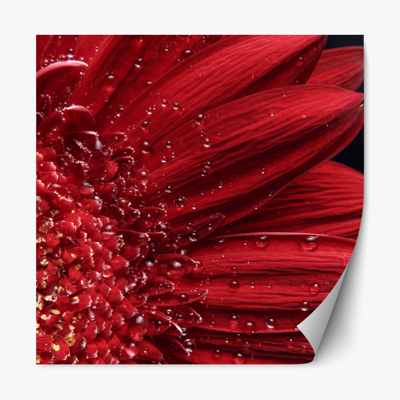 Naklejka repozycjonowalna Czerwona gerbera makro z kroplami rosy