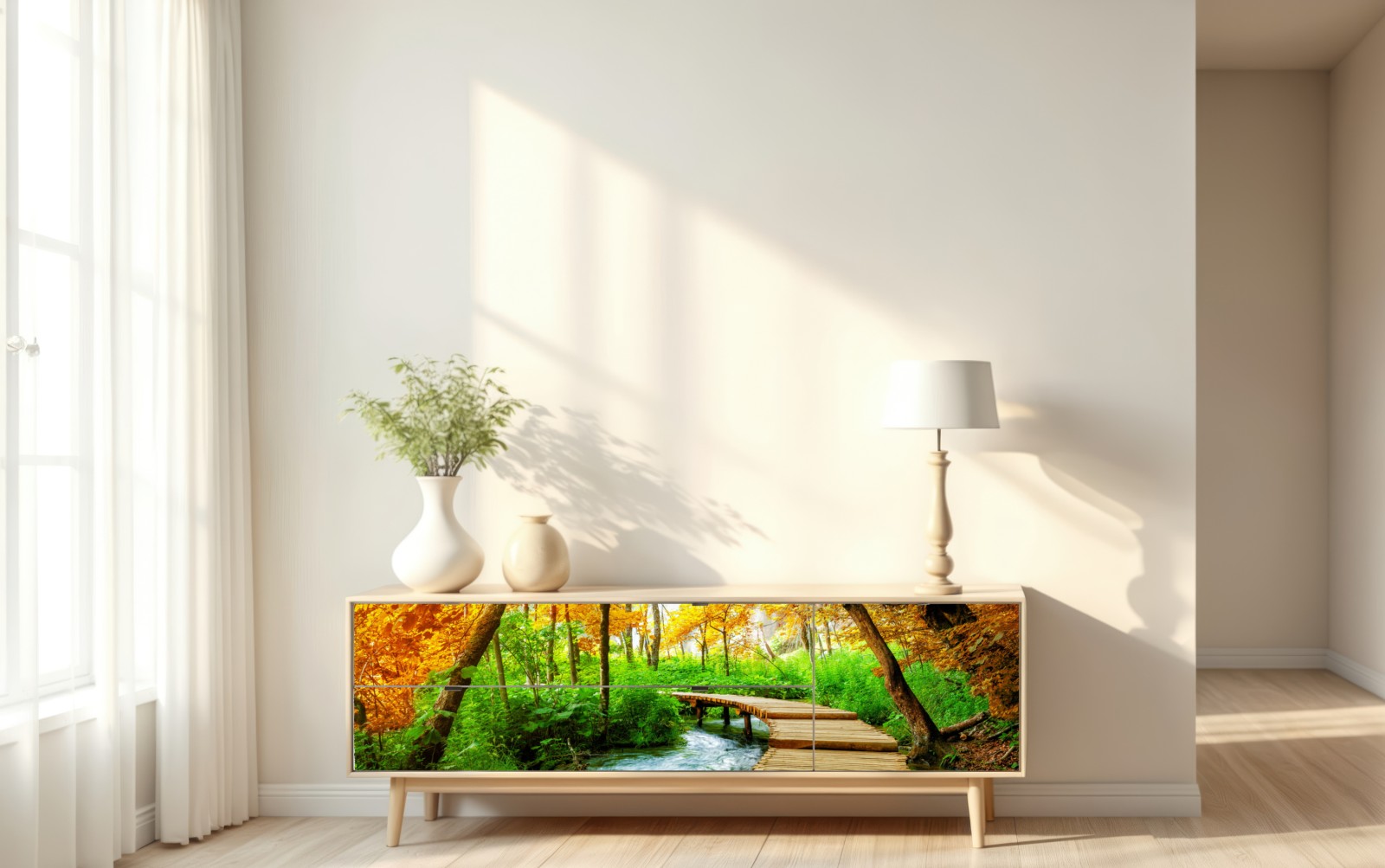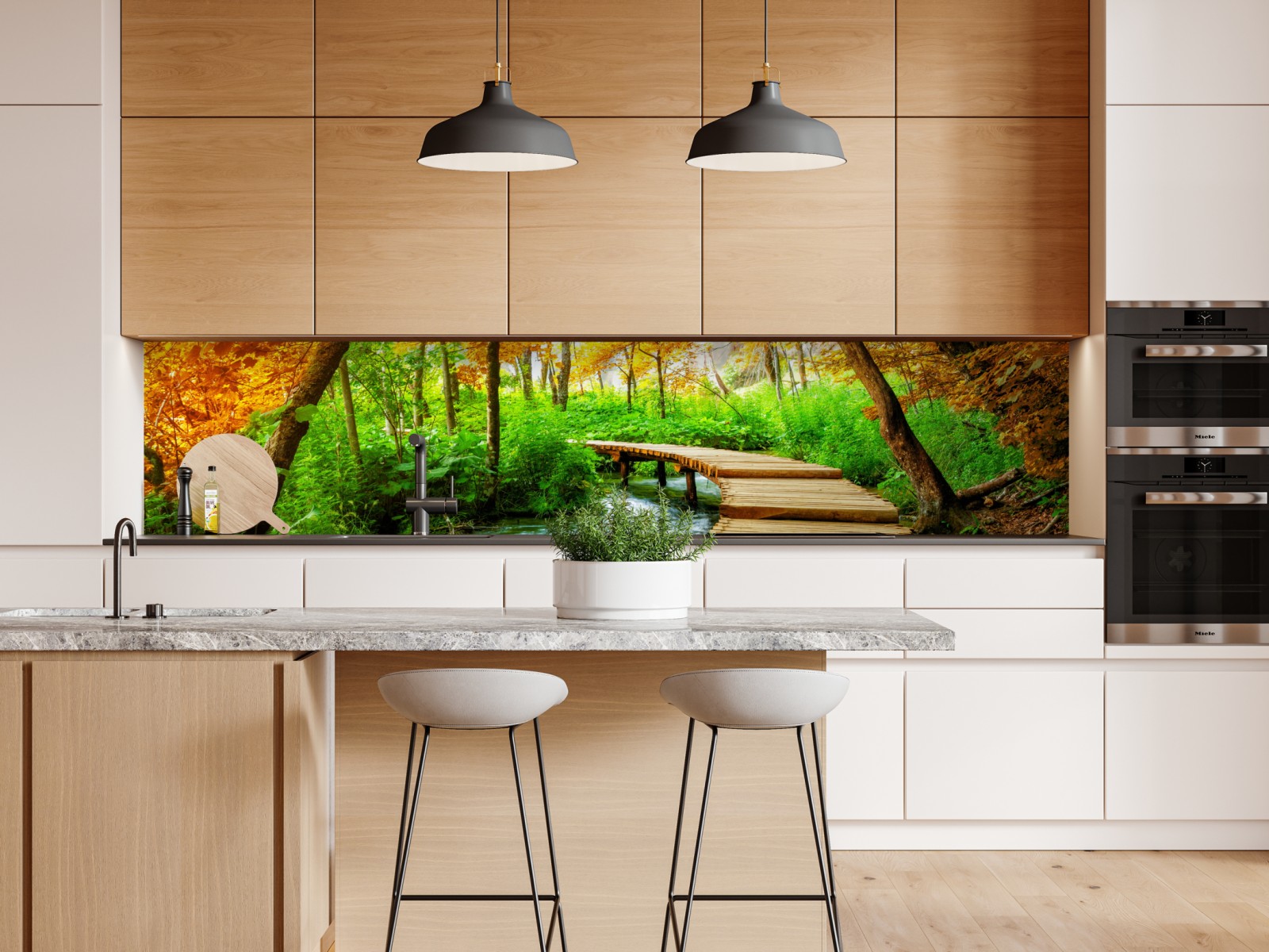 Naklejka repozycjonowalna Złoty pomost w lesie nad Plitwickimi Jeziorami