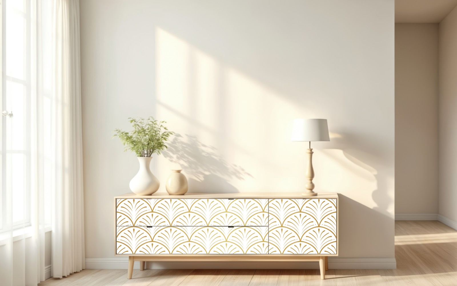 Naklejka repozycjonowalna Złoty wzór art deco w stylu wachlarza