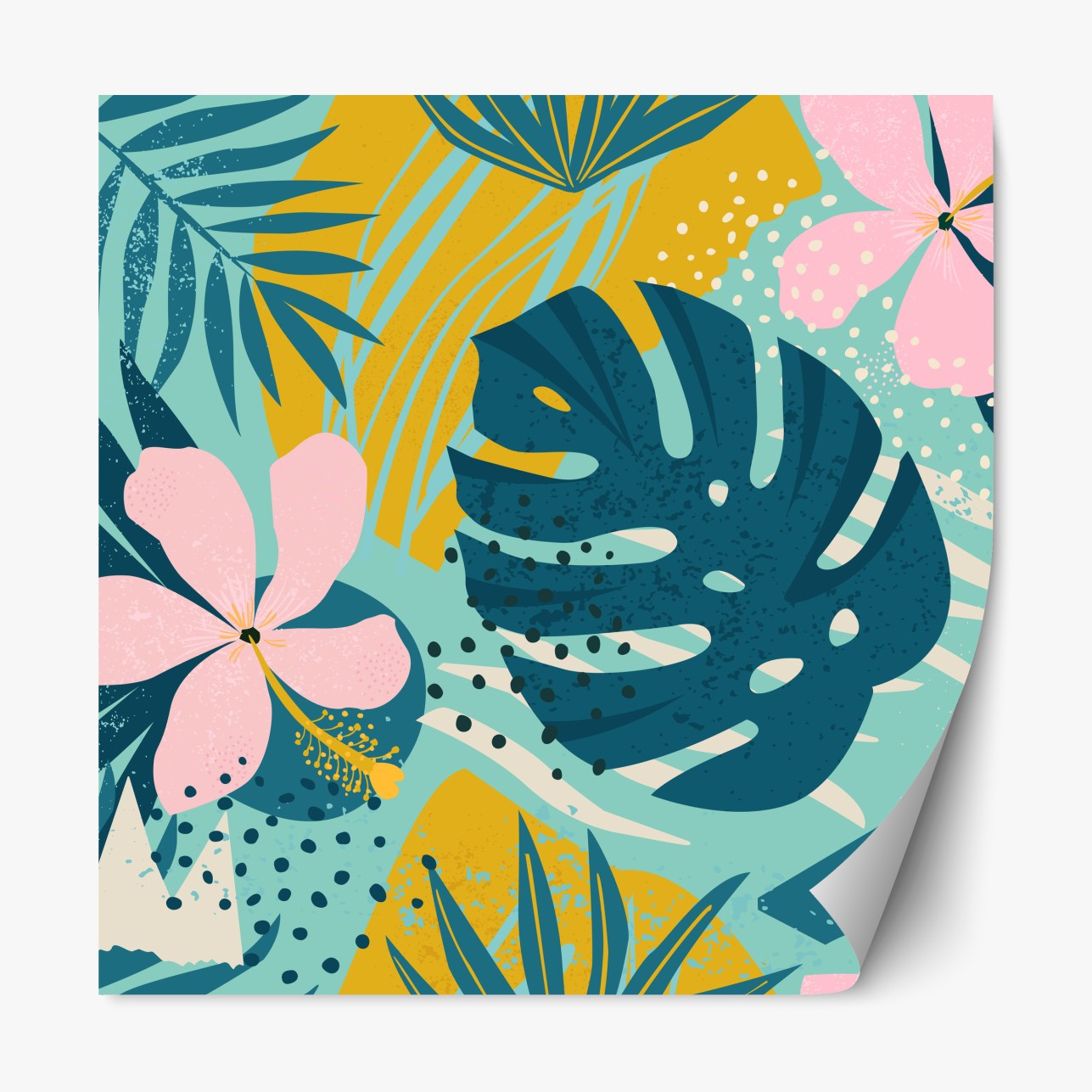 Naklejka repozycjonowalna Tropikalne liście i kwiaty